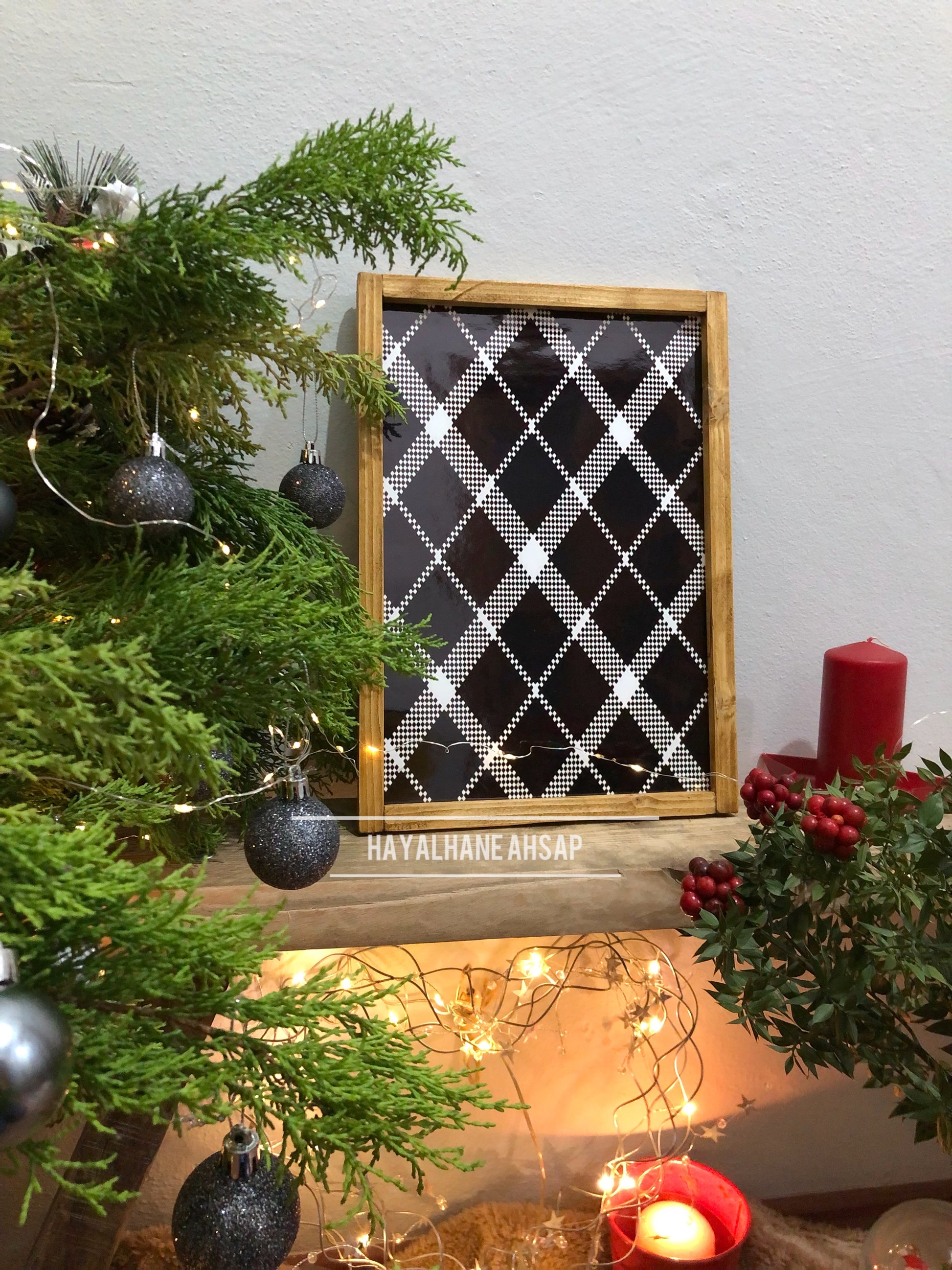 25*35 cm ölçüsünde ahşap üzerine parlak folyo baskılıdır.