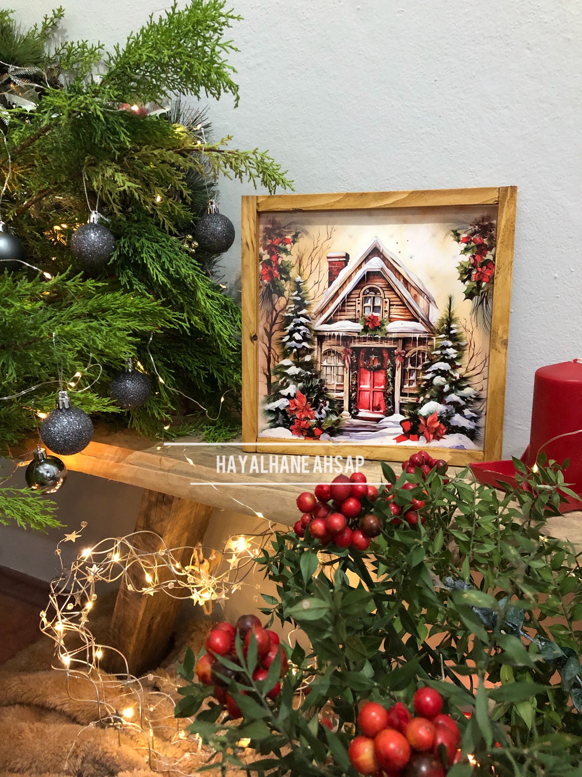 25*25 cm ölçüsünde ahşap üzerine parlak folyo baskılıdır.
