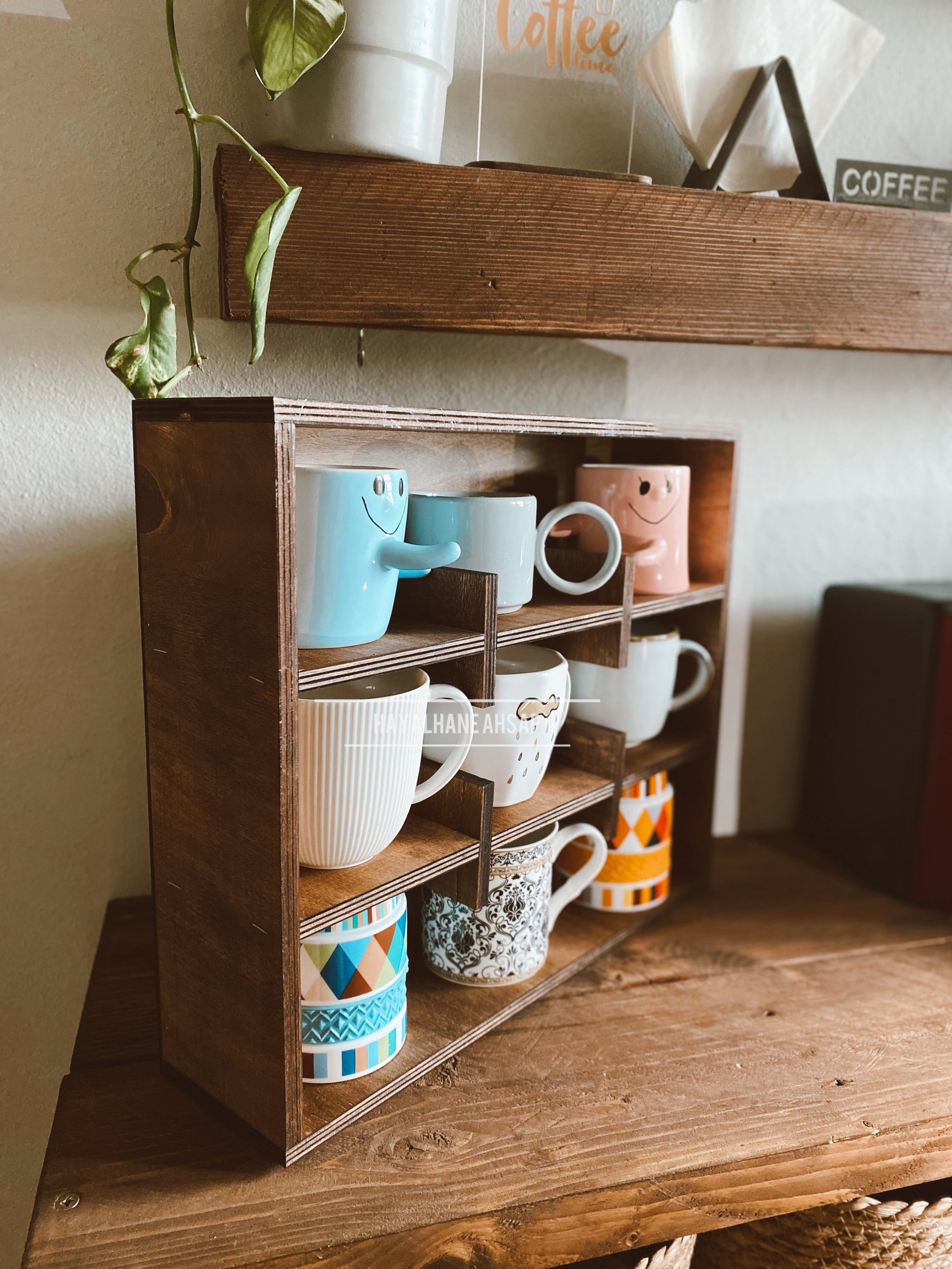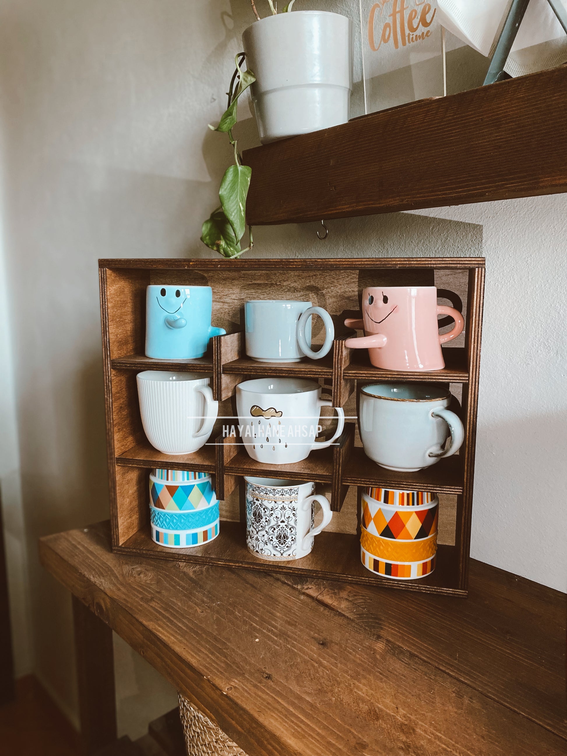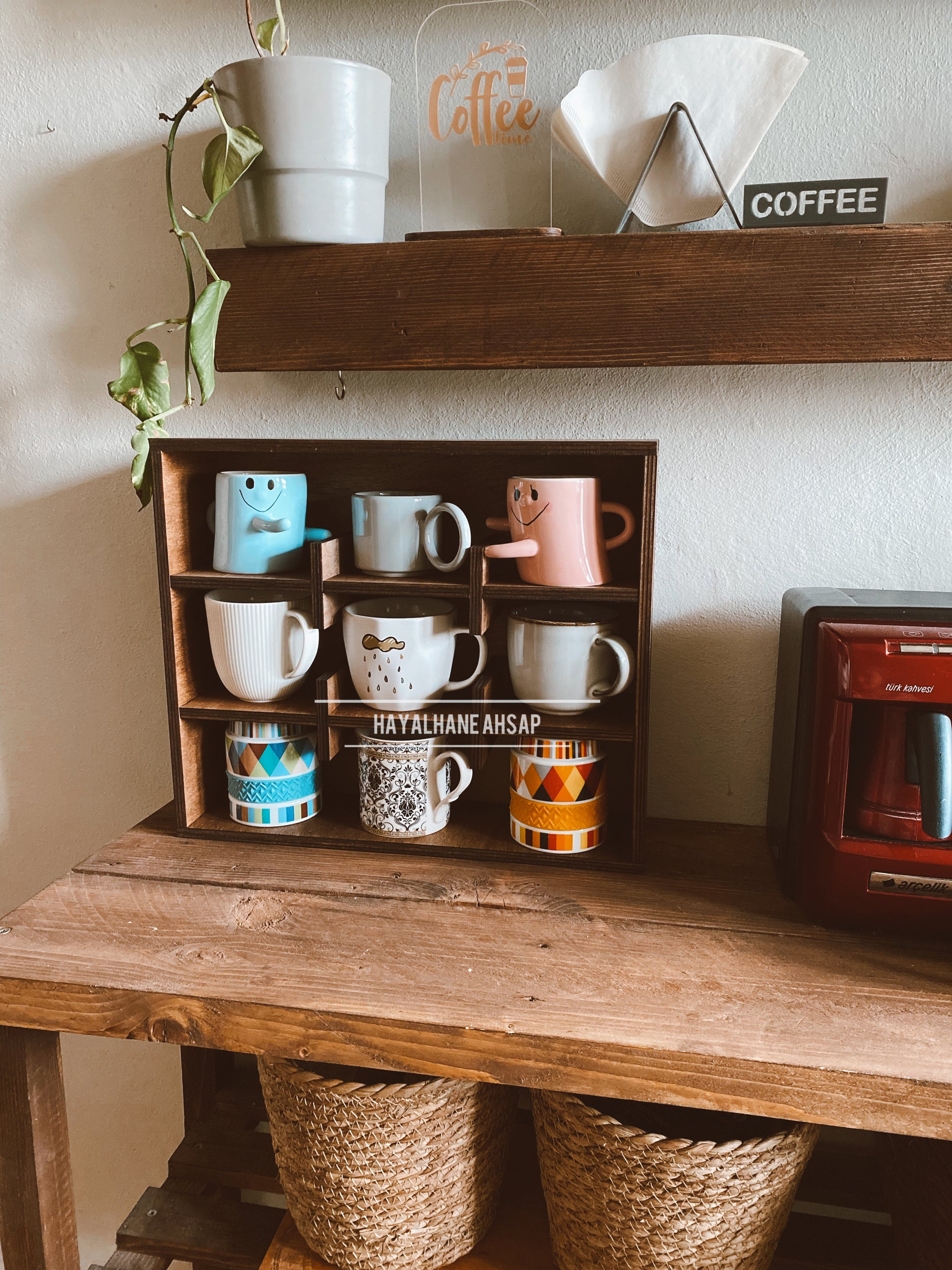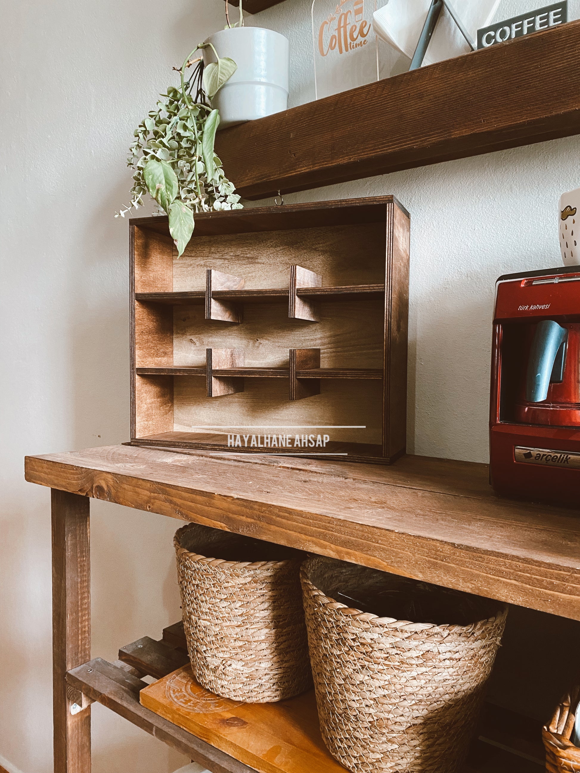 Ahşap Kupa Rafı/ Özgün tasarımlı bu raf ile en sevdiğiniz kupa, obje ve fincanlarınızı sergileyebilirsiniz. Dilediğiniz alanda kullanabileceğiniz ürünün ceviz renk tonu ürünlerimiz arasında bulunuyor.
