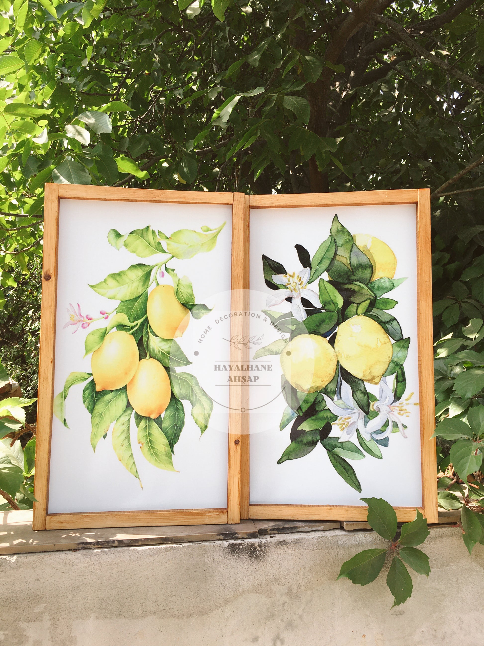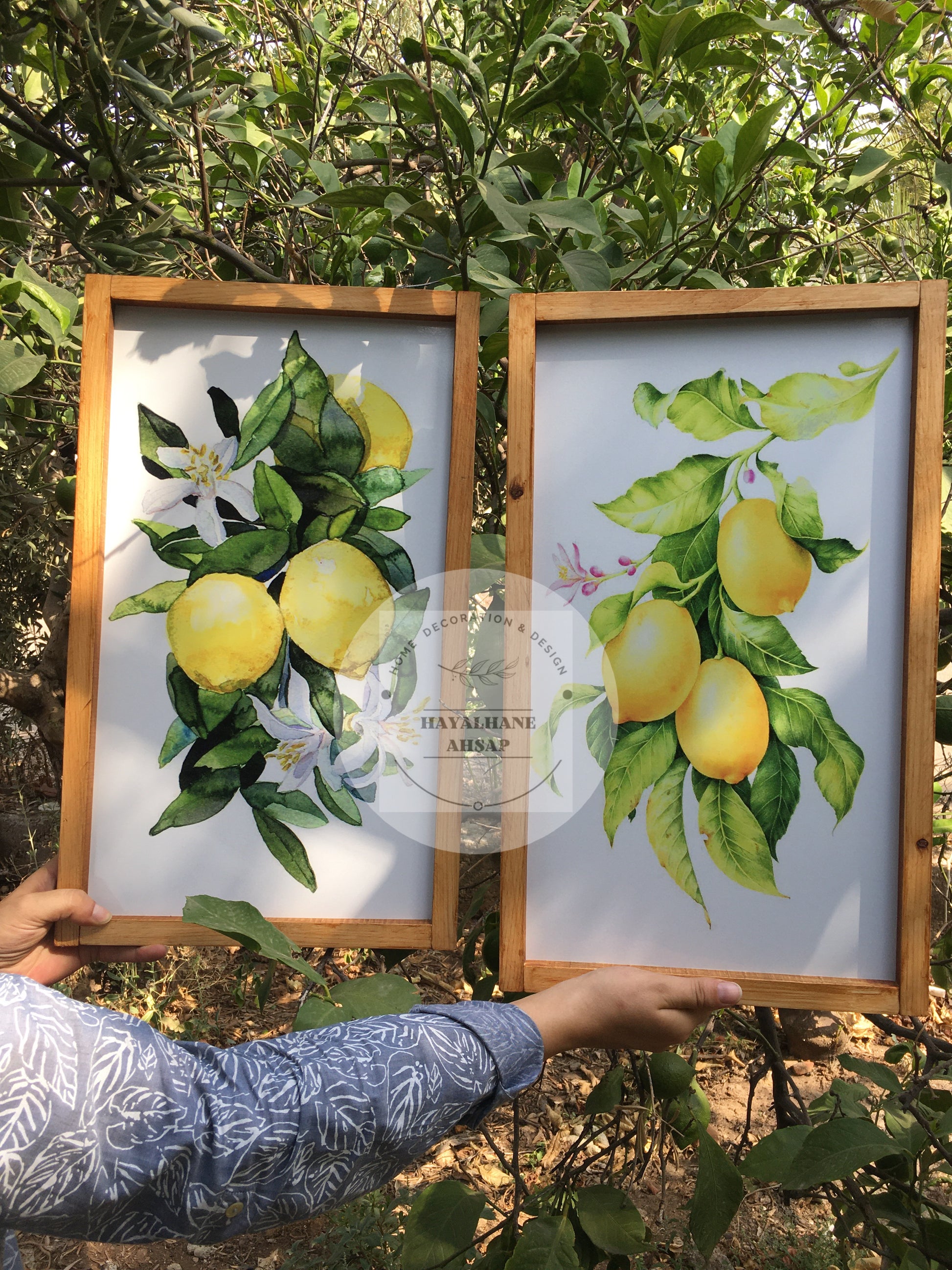 Limon temalı ahşap çerçeveli tablolar 30*50 cm ölçülerinde el yapımı masif ağaç çerçevelidir.