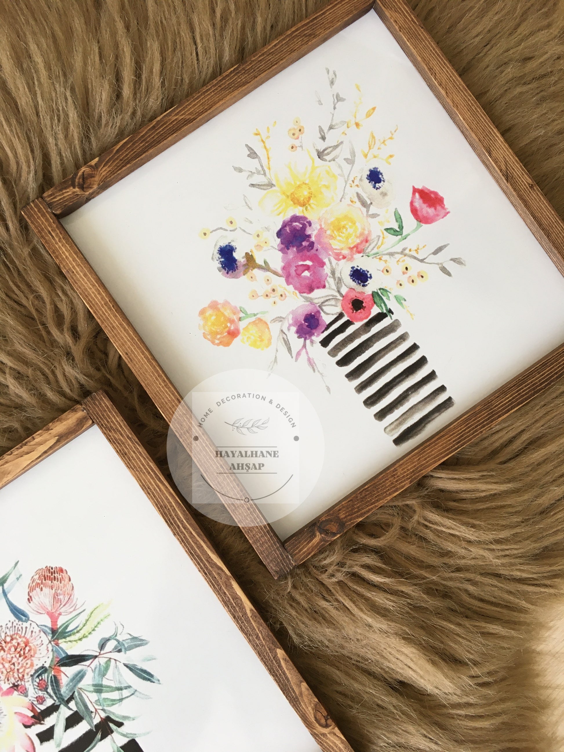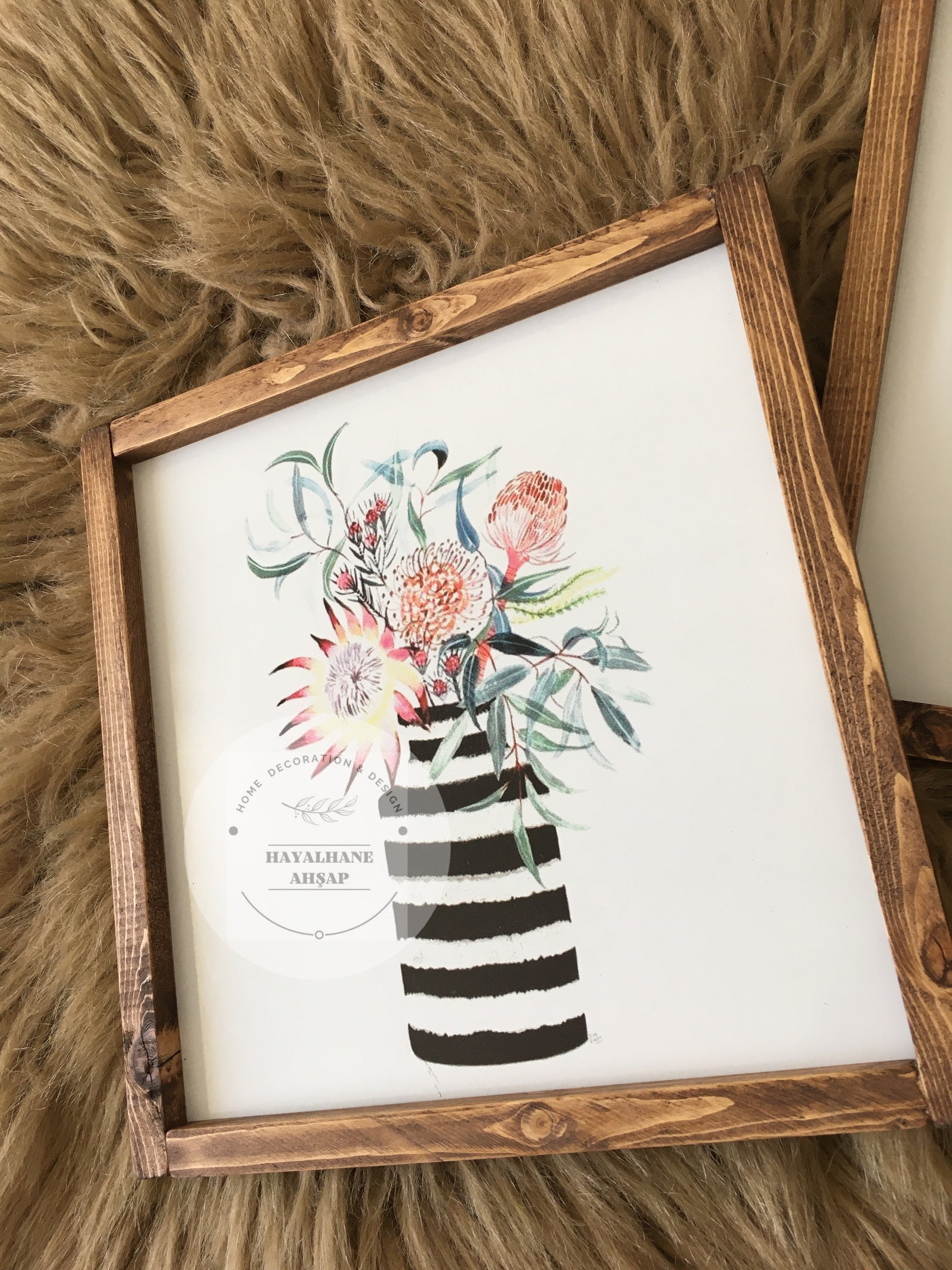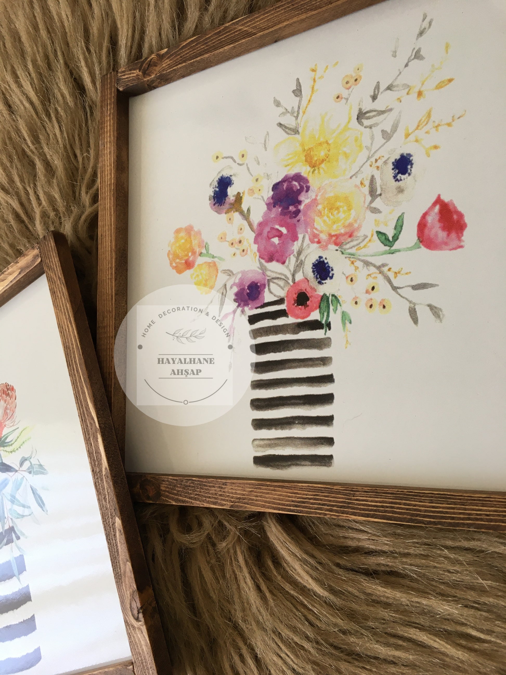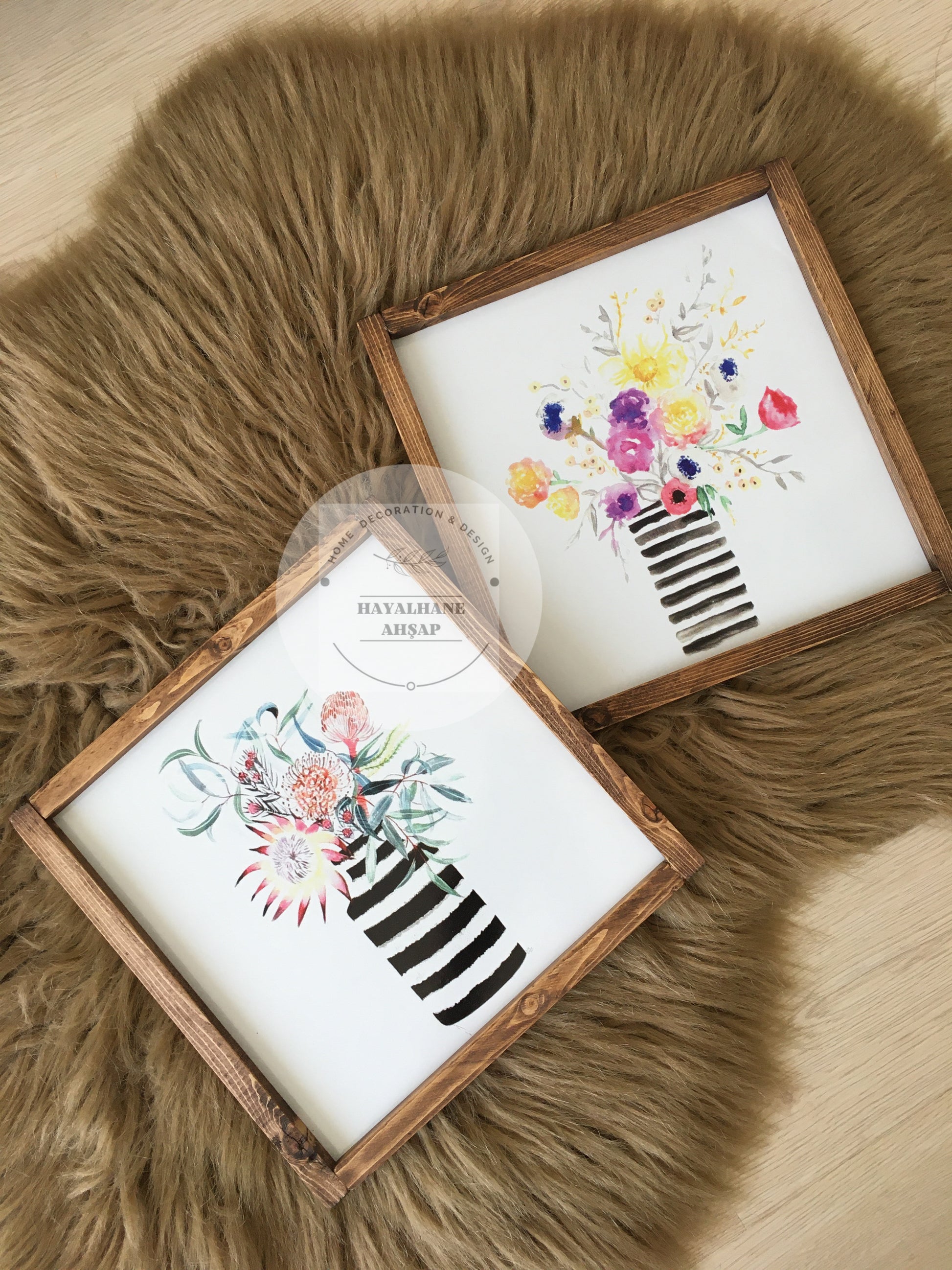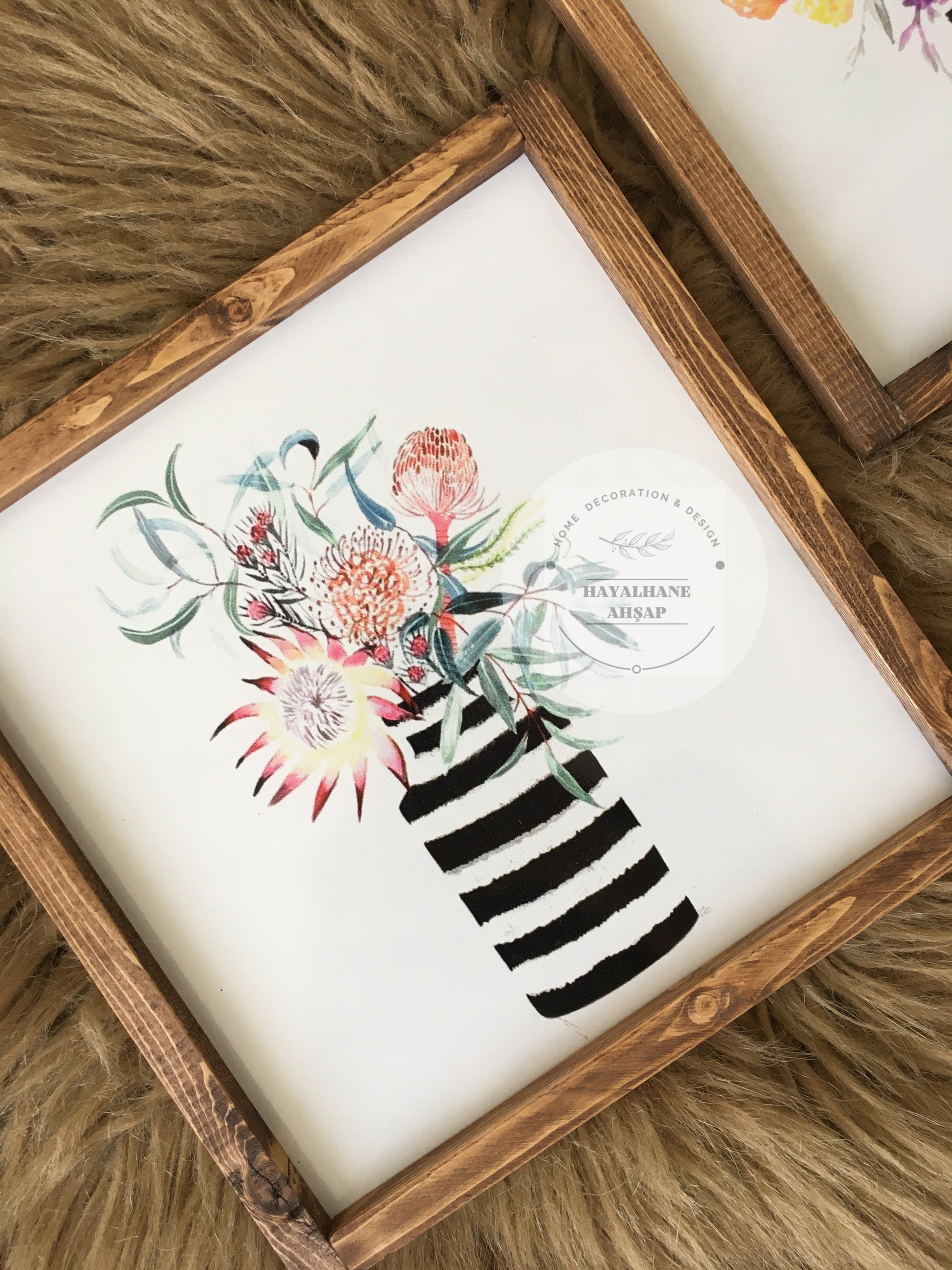 Ürün masif ağaç çerçevelidir. İç kısımları ahşap üzerine parlak baskılıdır. Ürün 25*25 cm ölçülerinde ikili settir. Arkasında askı aparatı mevcuttur. Bantlı kullanmak isterseniz bize iletebilirsiniz.