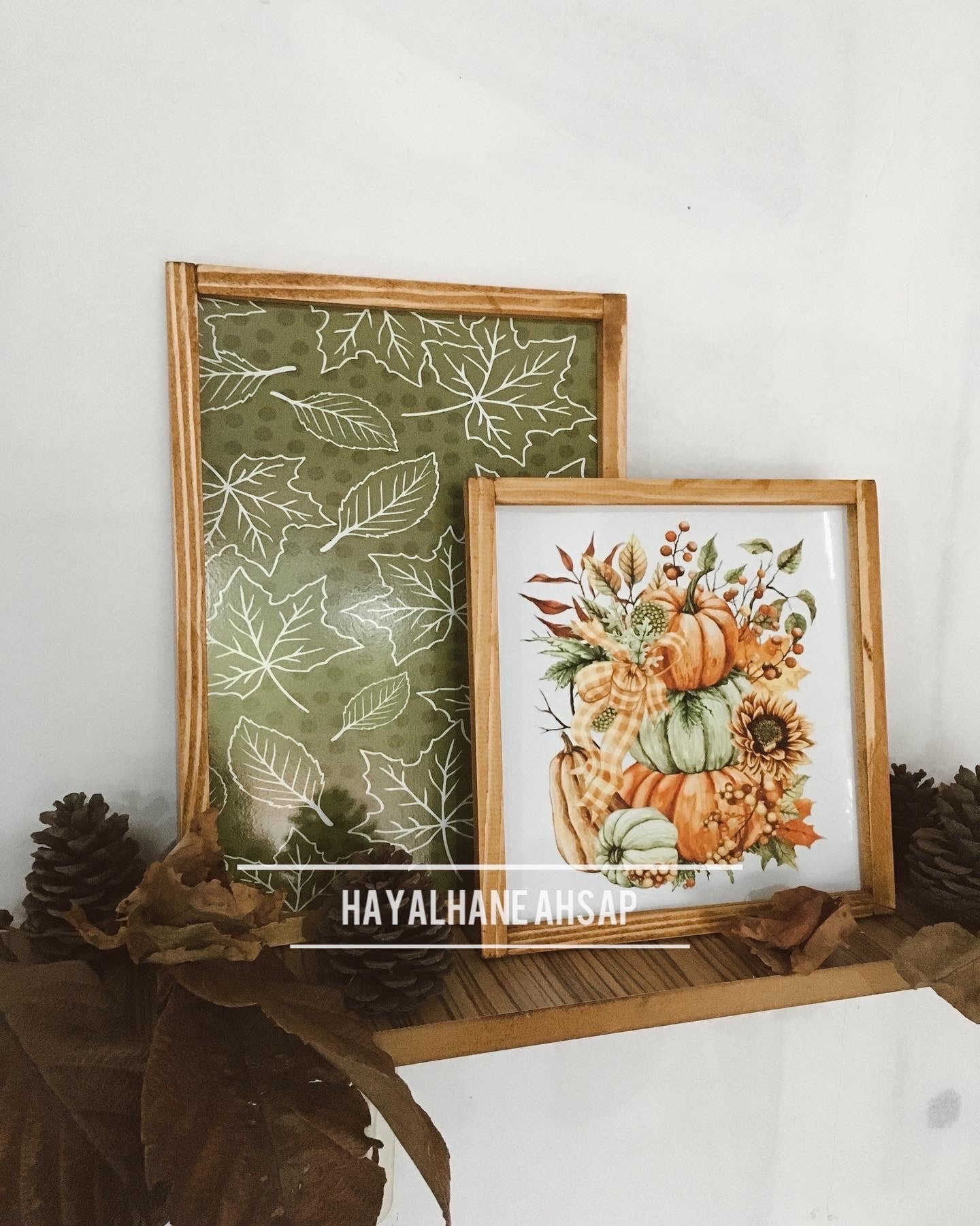 Sonbahar renklerini ve ruhunu yansıtan tablolar masif ahşap çerçevelidir.