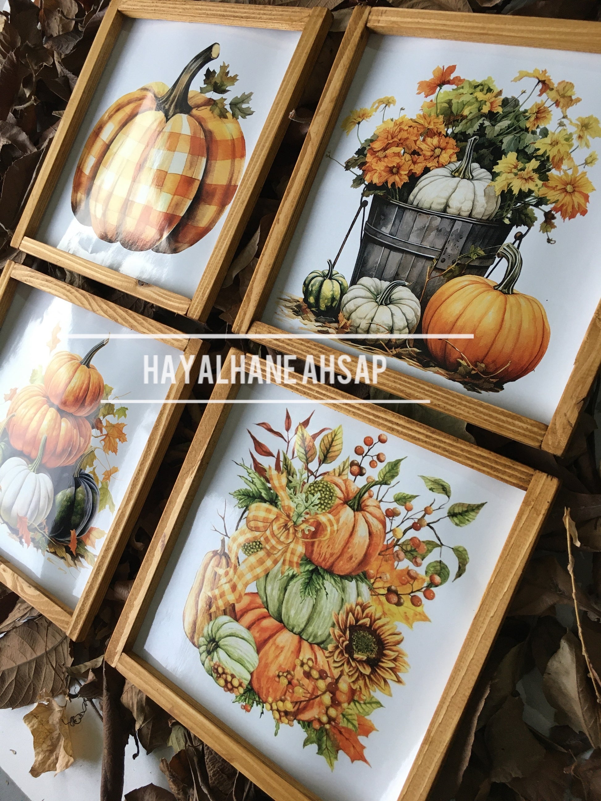 Sonbahar renklerini ve ruhunu yansıtan tablolar masif ahşap çerçevelidir.