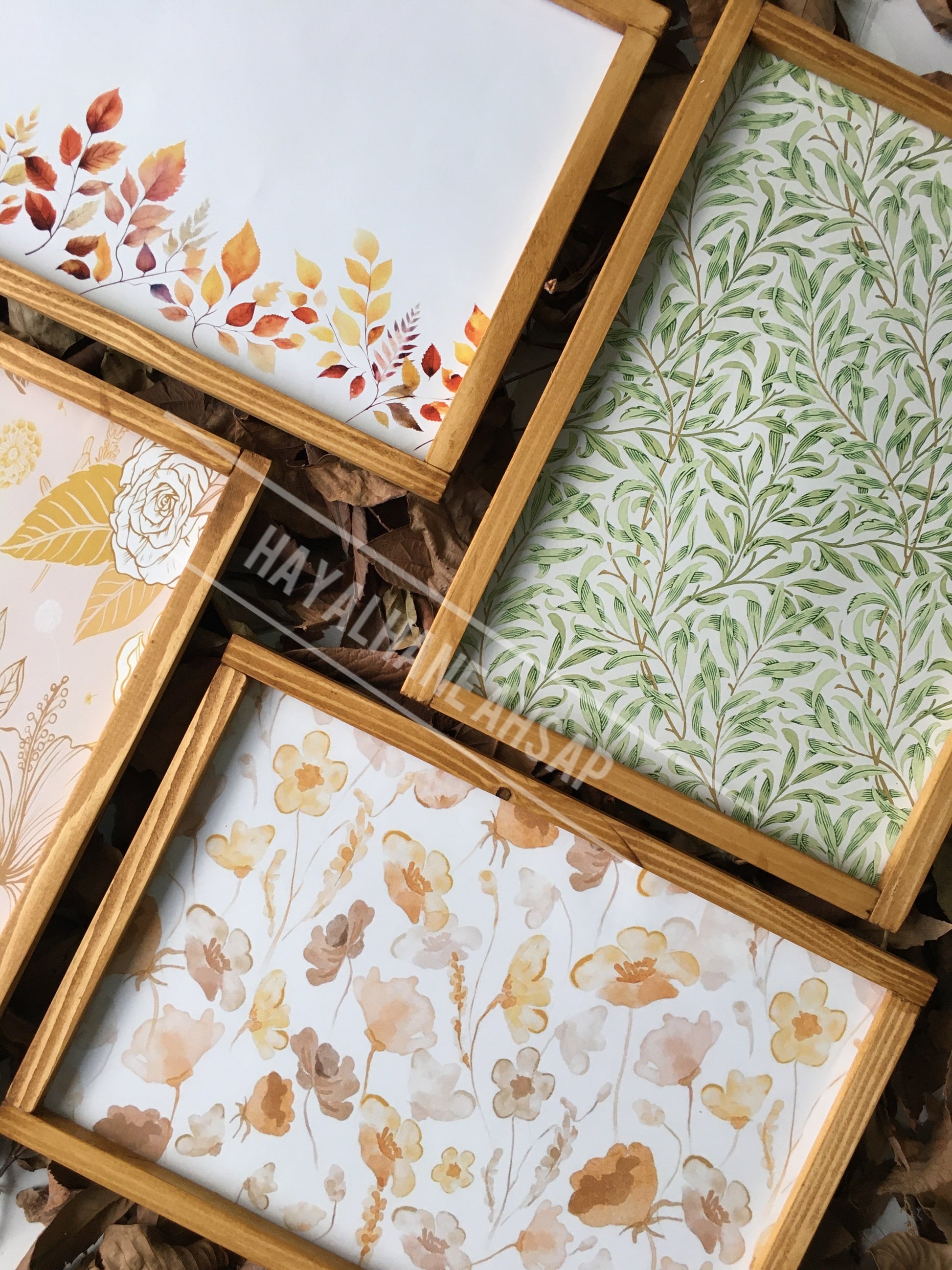 Sonbahar renklerini ve ruhunu yansıtan tablolar masif ahşap çerçevelidir.