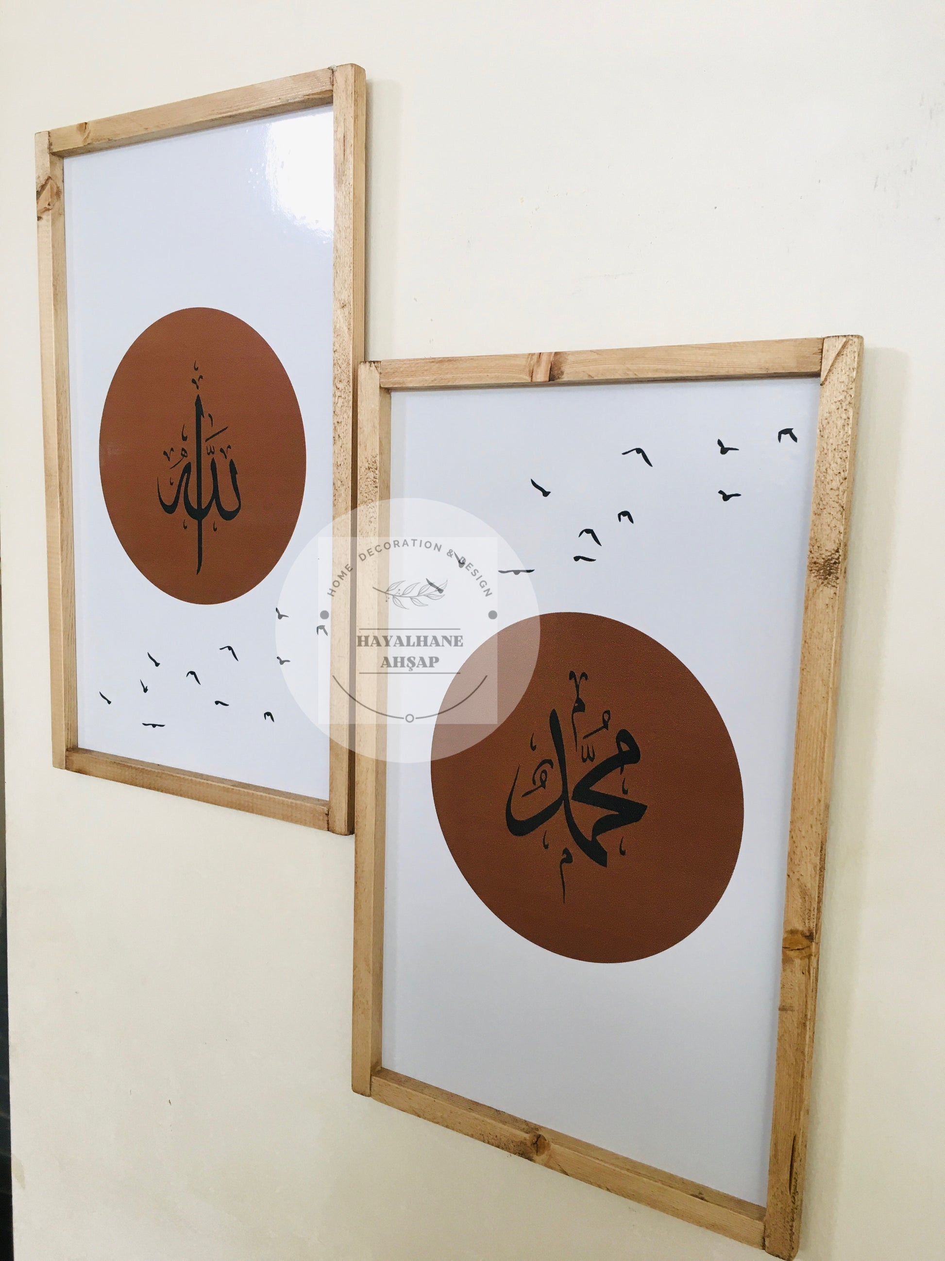 Ürün masif ağaç çerçevelidir. İç kısımları ahşap üzerine parlak baskılıdır. Ürünler 25*40 cm ölçülerinde ikili settir. Arkasında askı aparatı mevcuttur. Bantlı kullanmak isterseniz bize iletebilirsiniz.