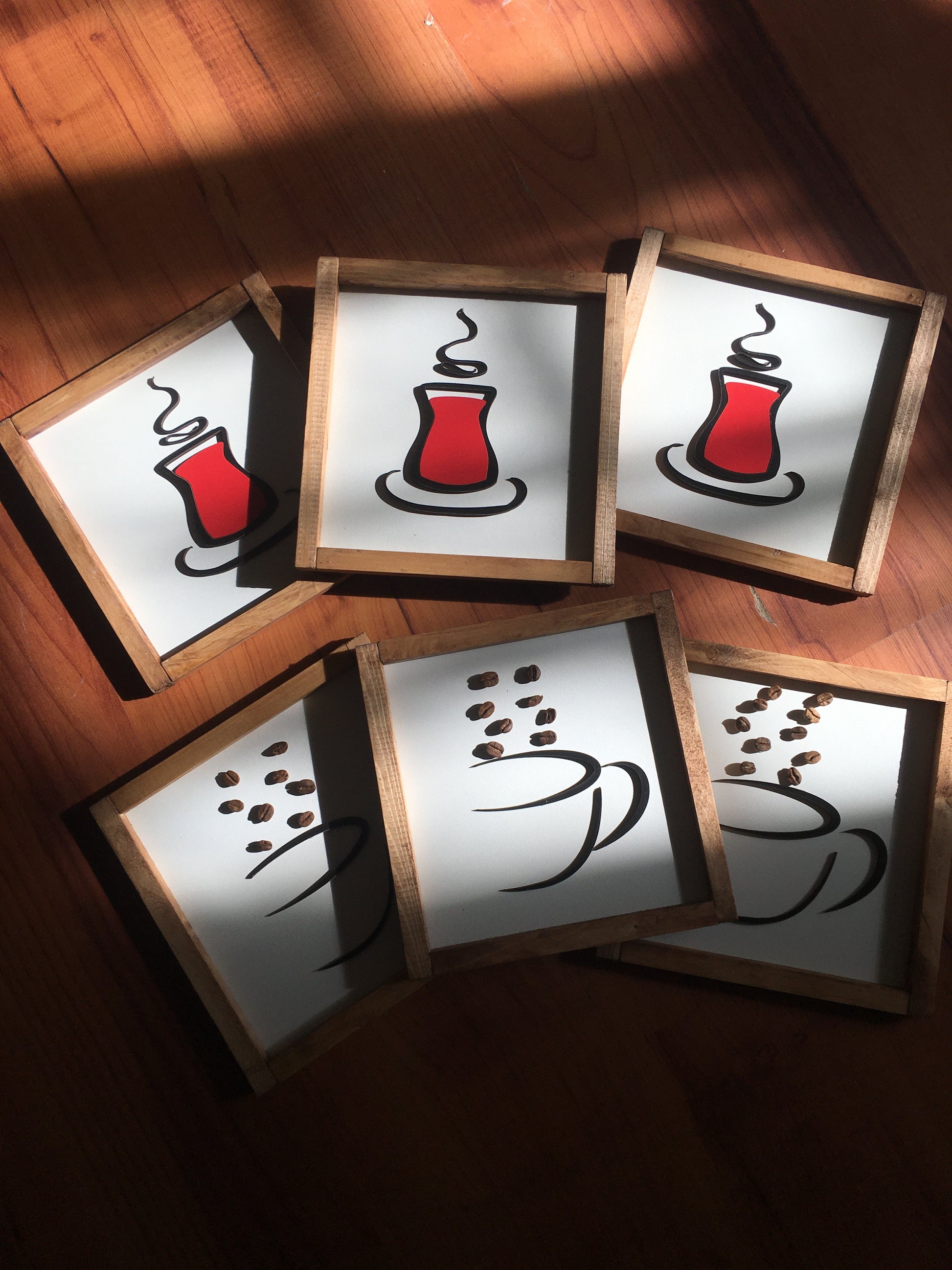 • Görseldeki ürünler 20*20 cm masif ağaç çerçevelidir.