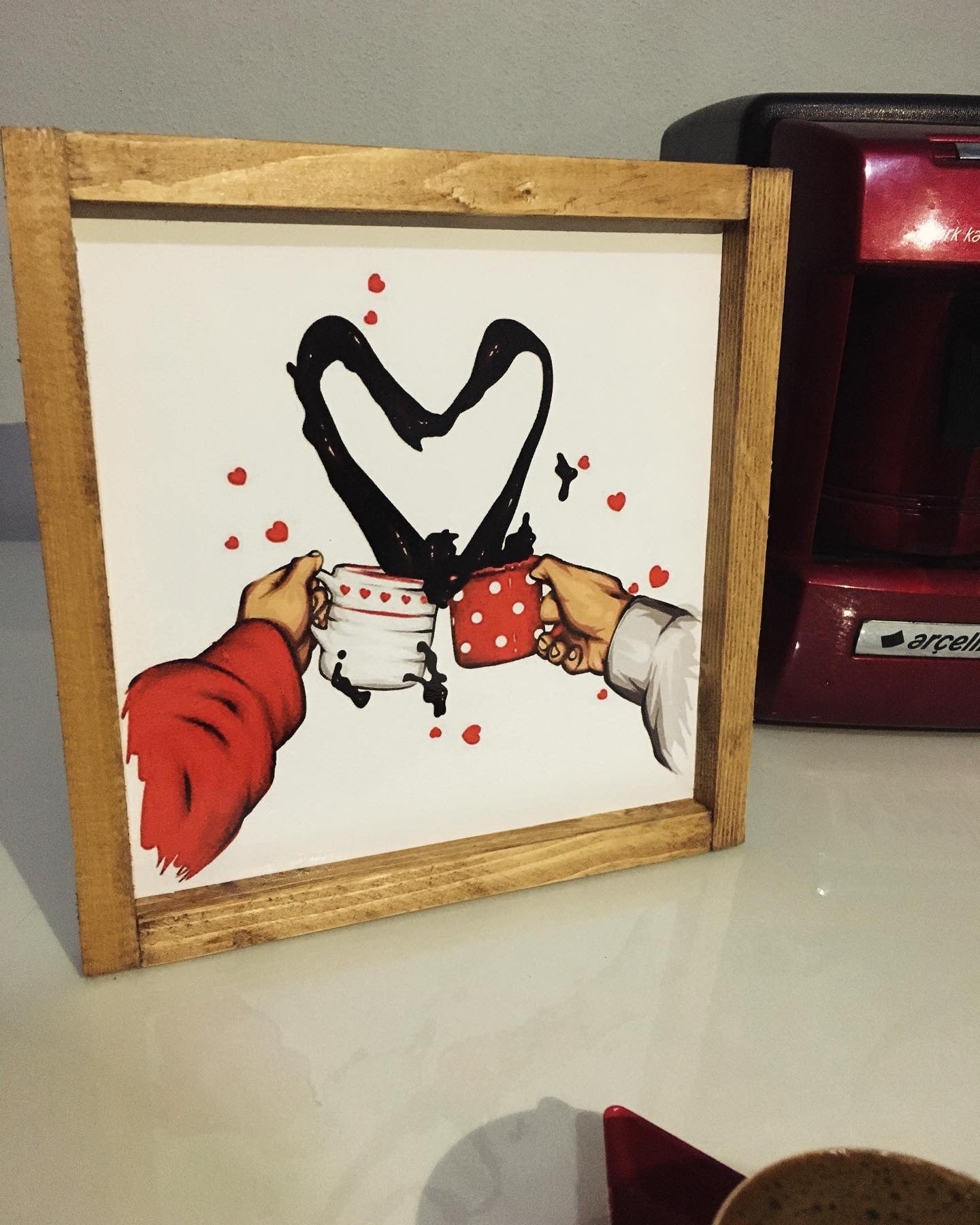 Kahve köşesi için zevkle kullanabileceğiniz tablomuz 20*20 cm ölçüsündedir.