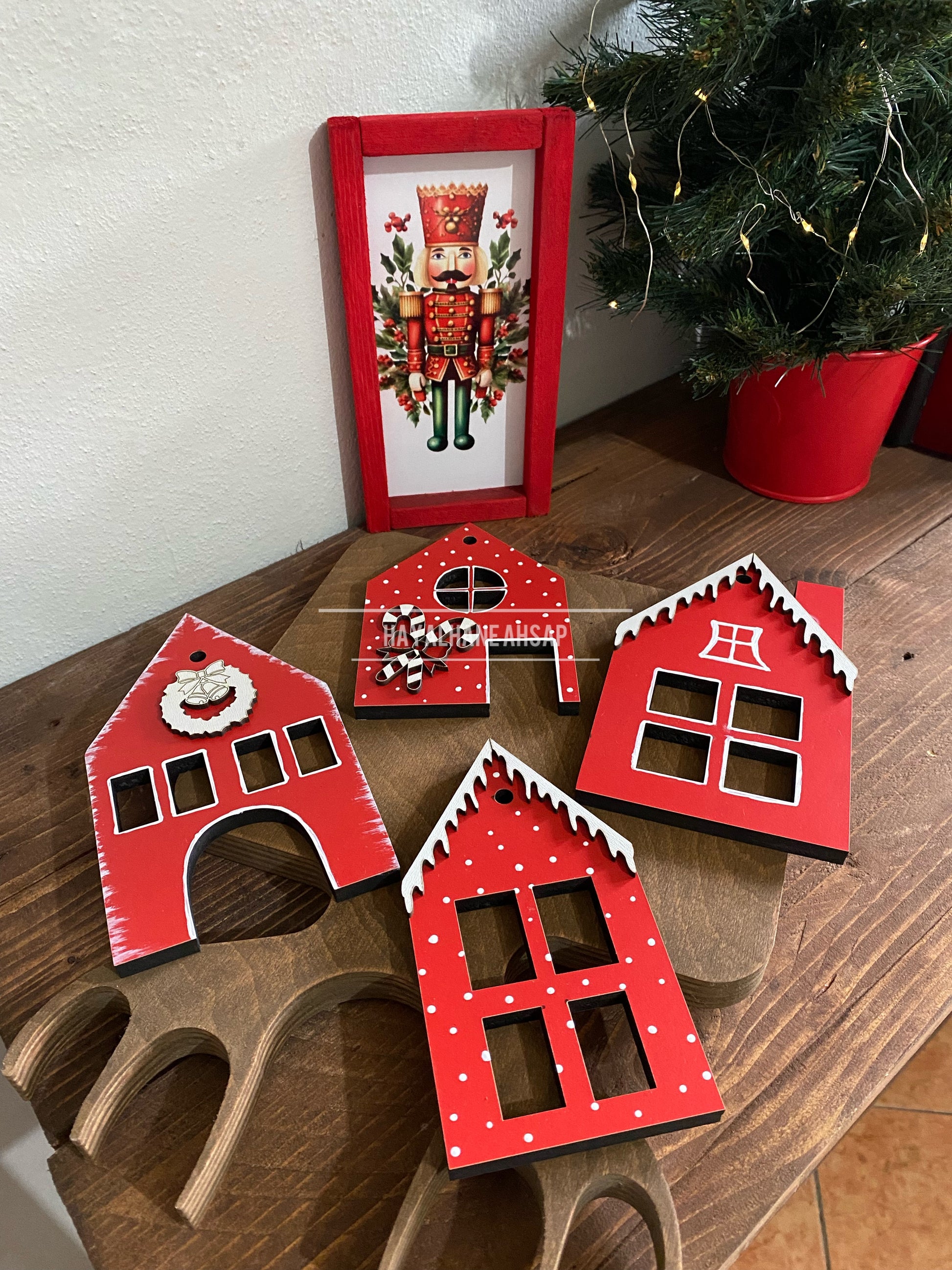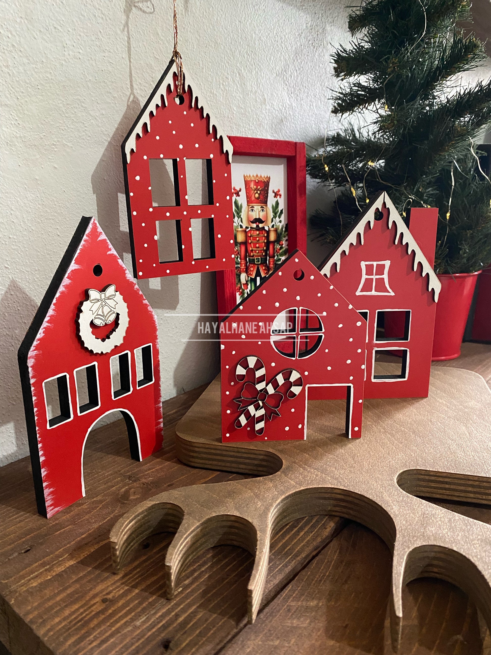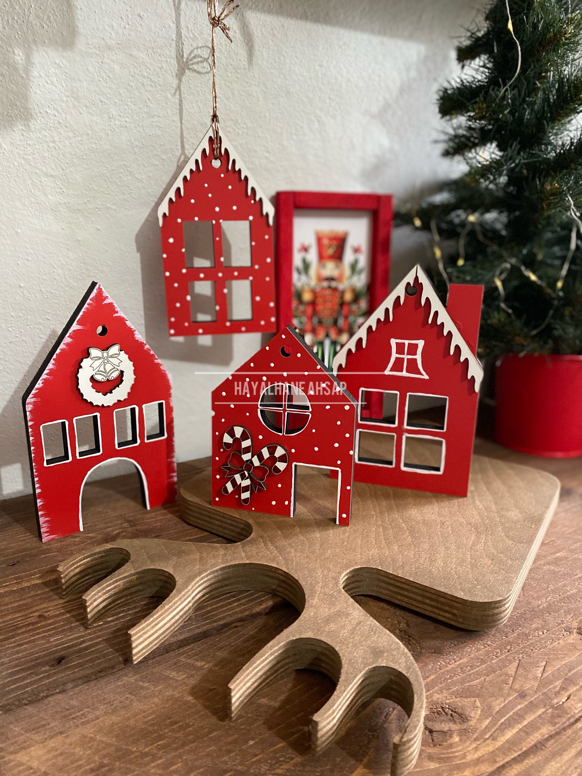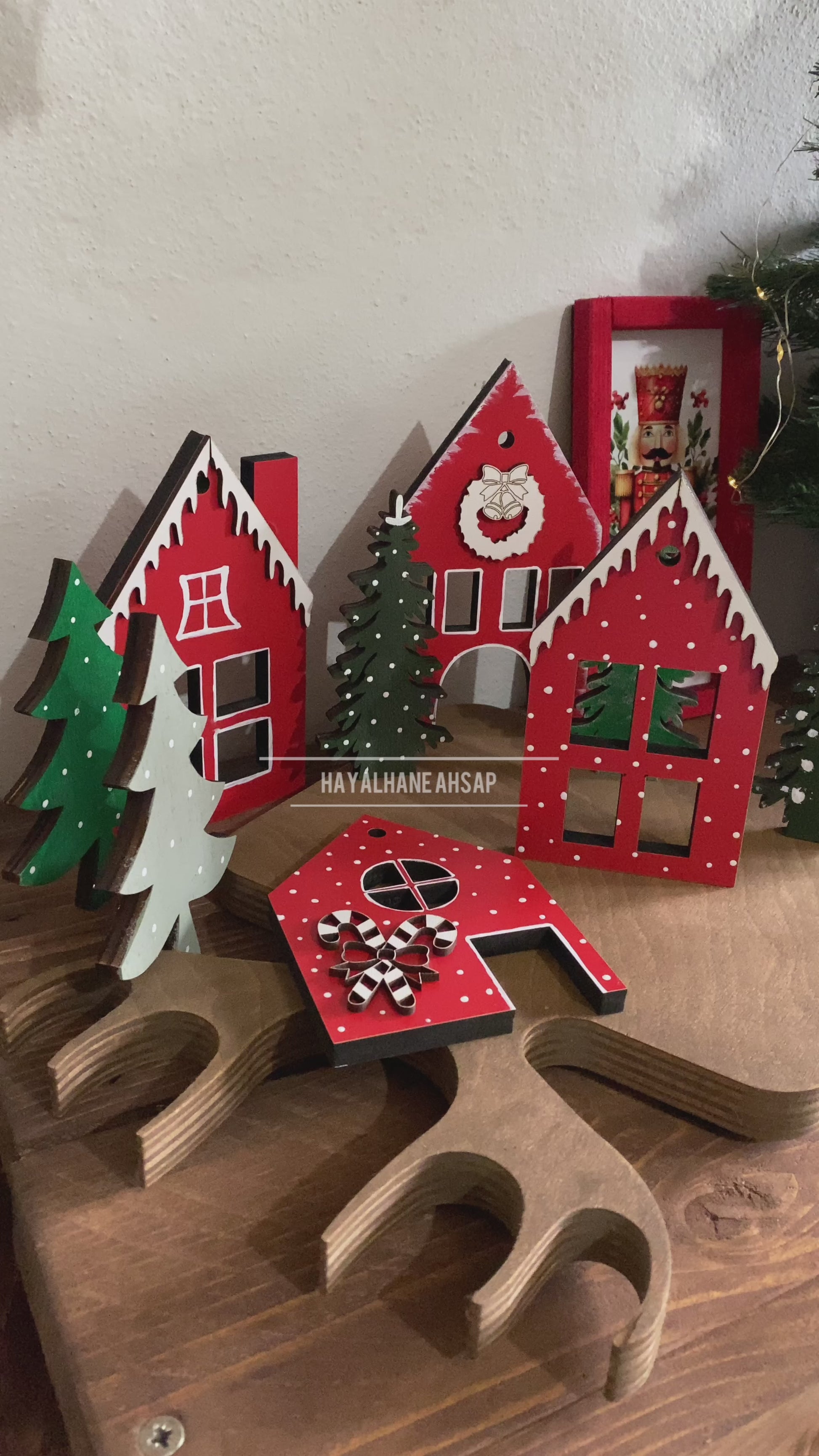 Yeni yıl ruhuyla el boyaması olarak hazırlanmış ahşap set.