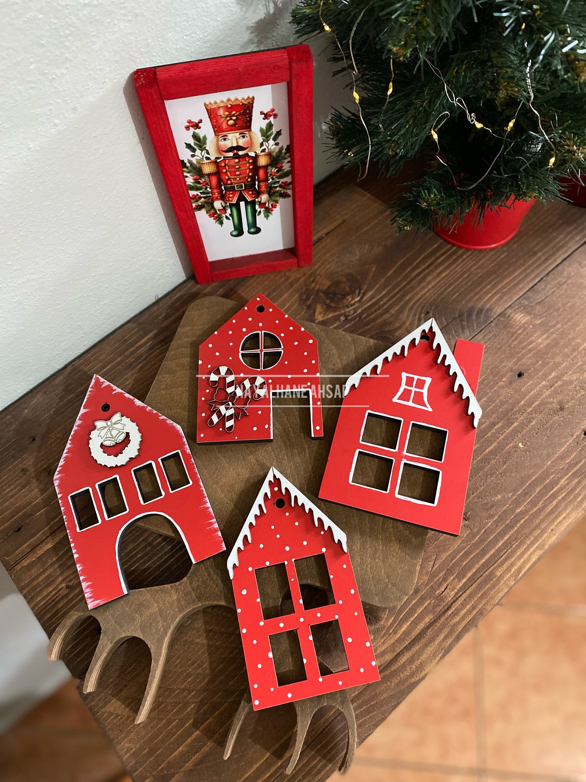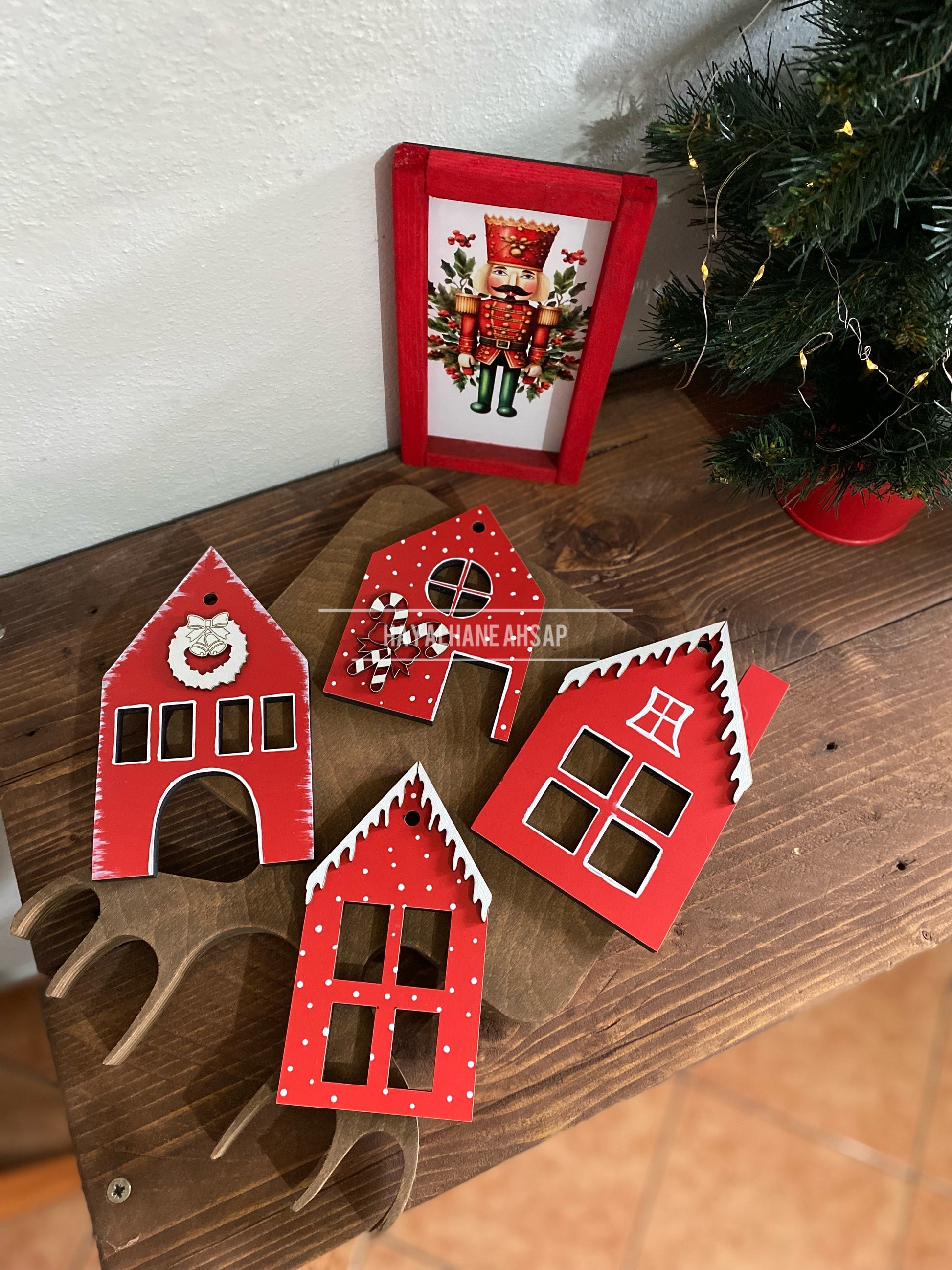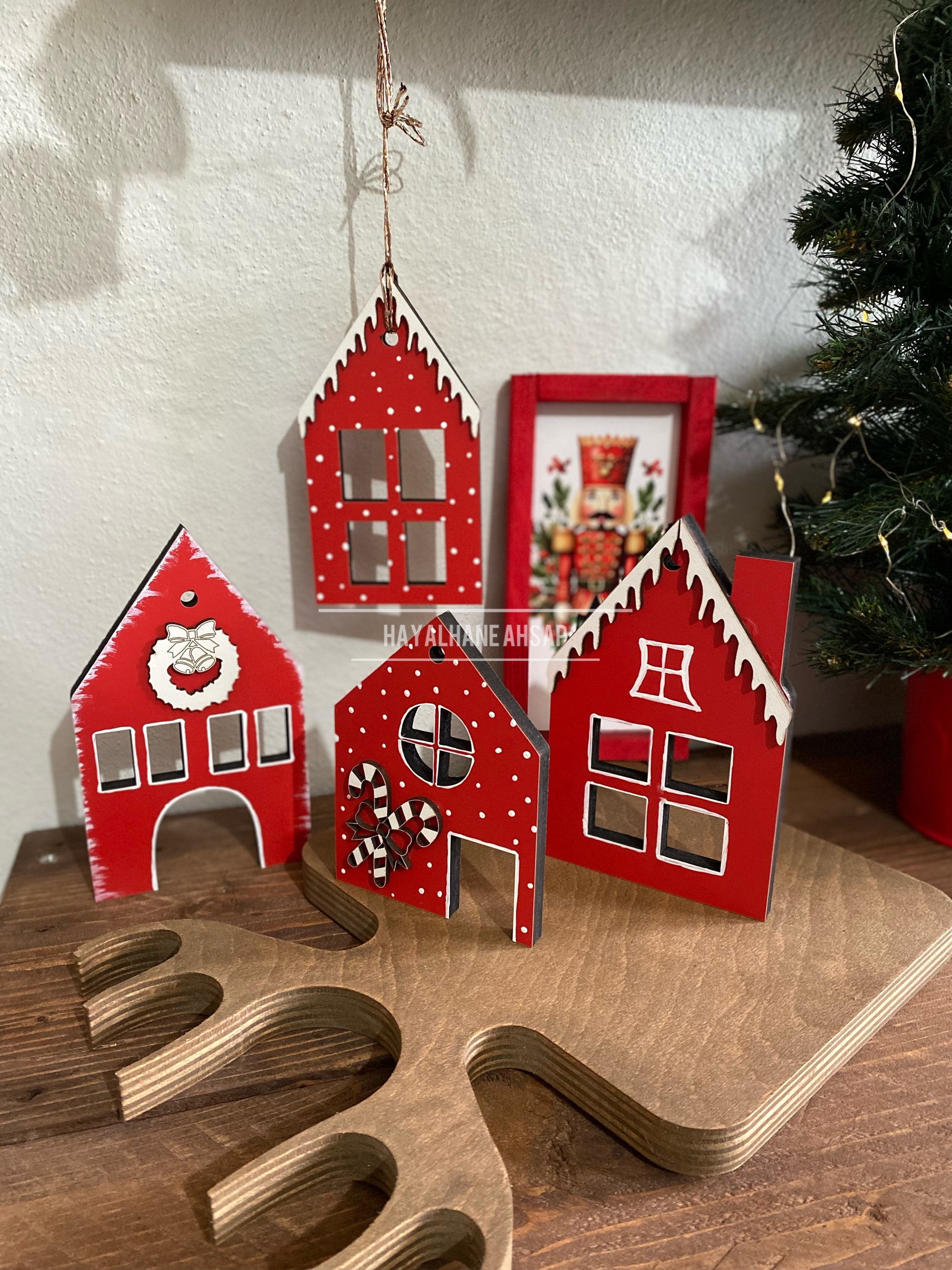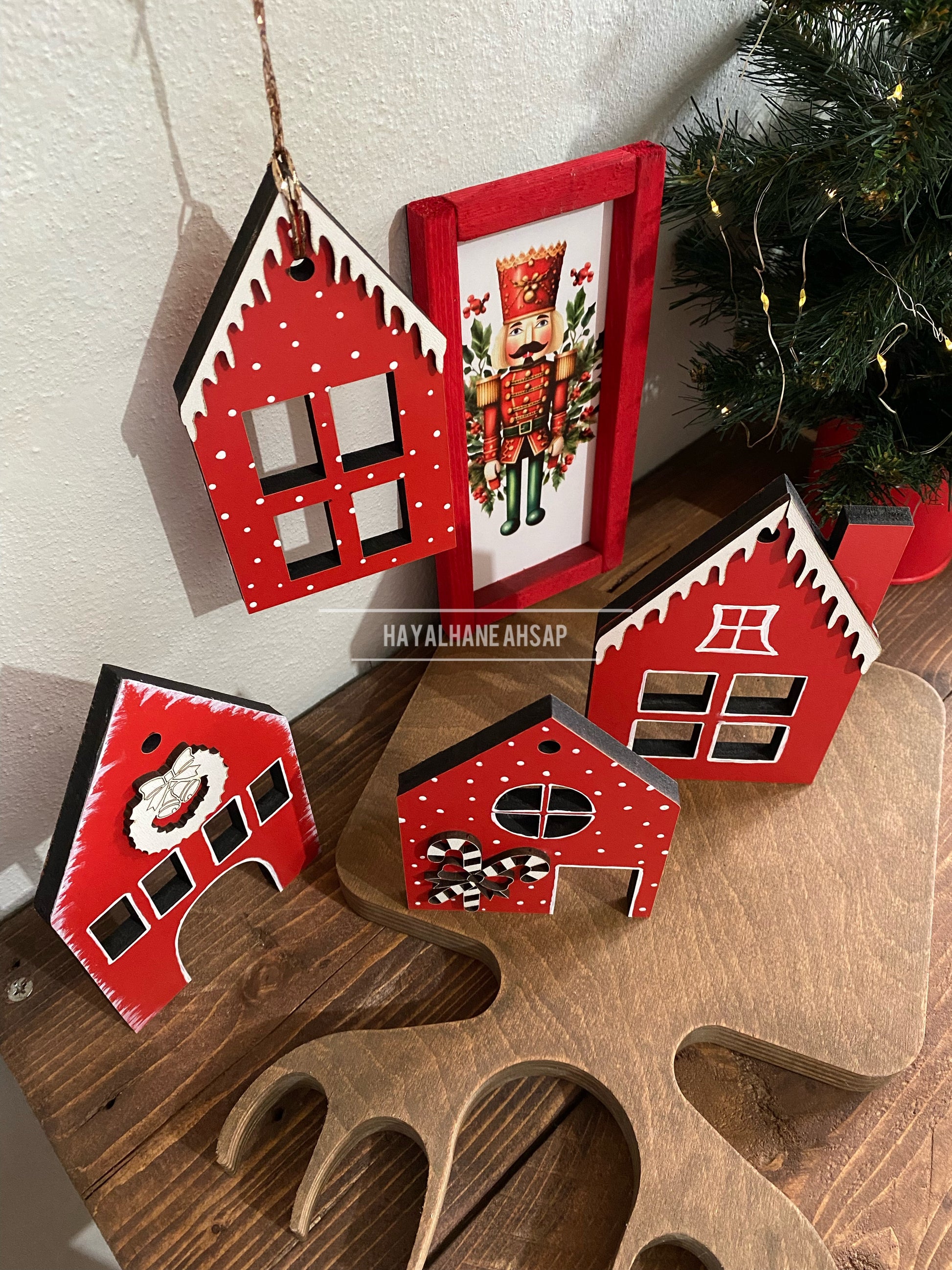 Yeni yıl ruhuyla el boyaması olarak hazırlanmış ahşap set.