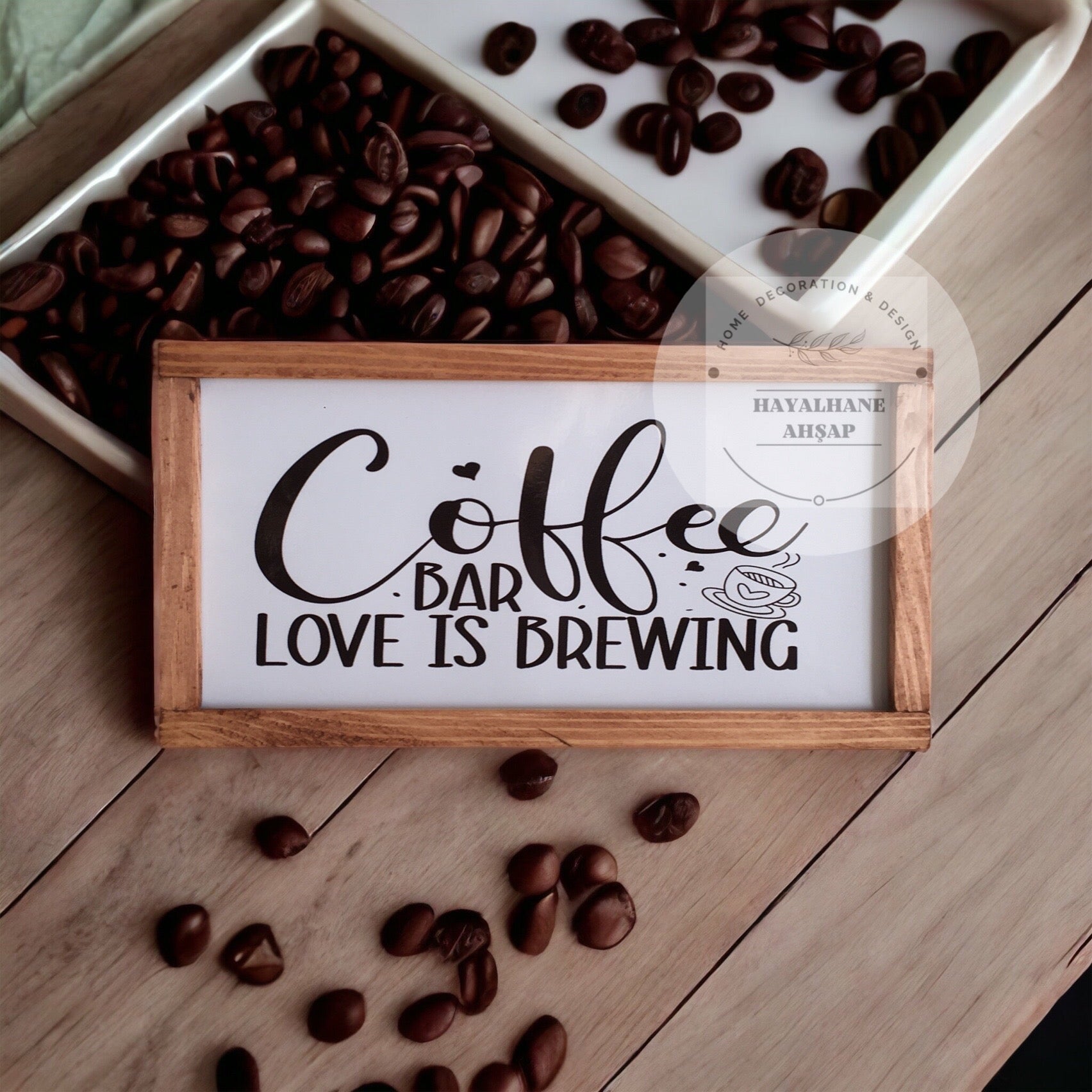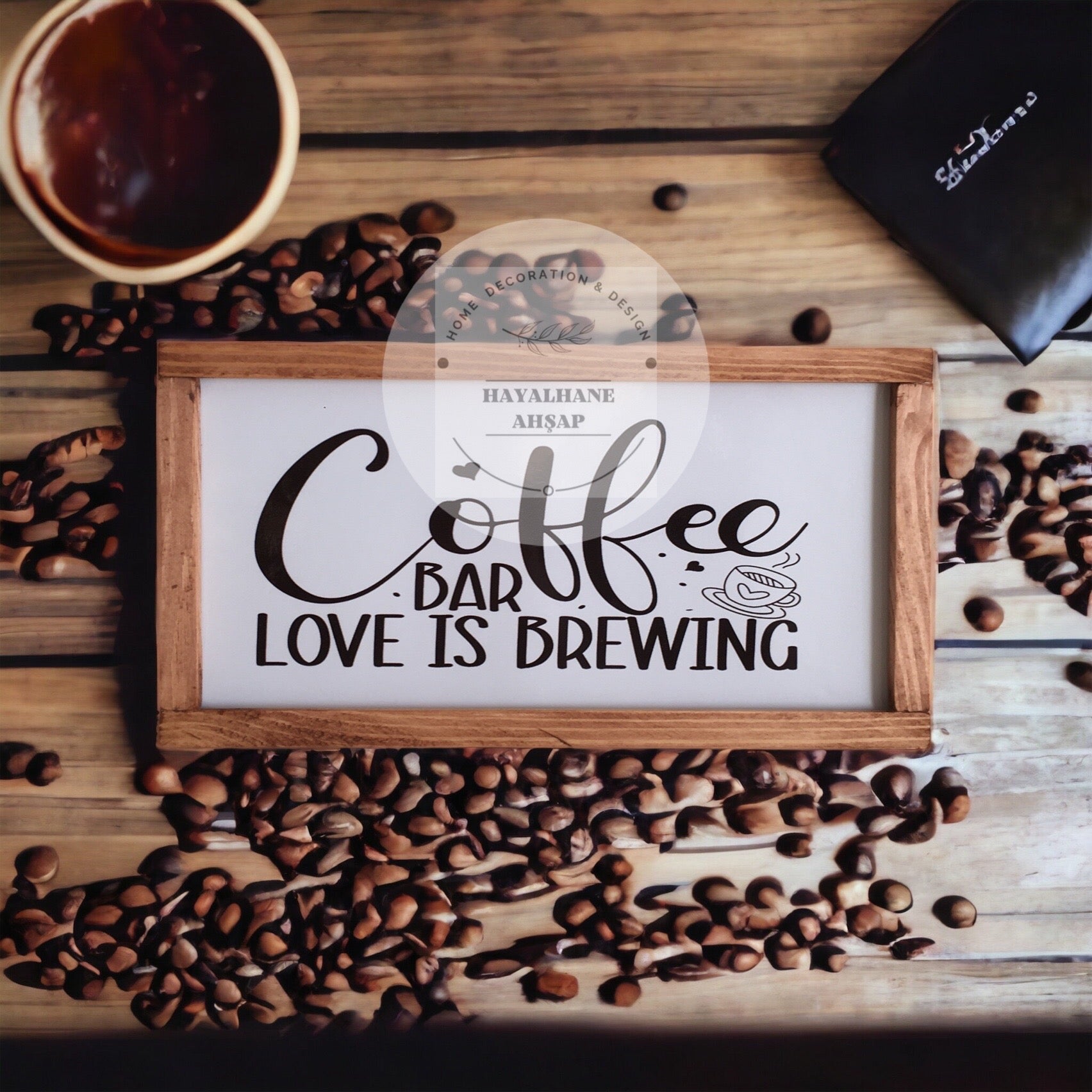 Это специально разработанное изделие, которое вы можете использовать в качестве декоративного элемента на кухне и в кофейном уголке, имеет размер 18*35 см и имеет каркас из массива ели ручной работы. Изделие полностью деревянное. Это глянцевая фольга, напечатанная на деревянном фоне. Вы можете легко очистить его влажной тканью, которая не выцветает. Стол отправляется с вешалкой, готовый к сборке. Вы можете использовать его с лентой, если хотите. Для этого достаточно отправить нам заявку на двусторонний скотч с номером заказа.