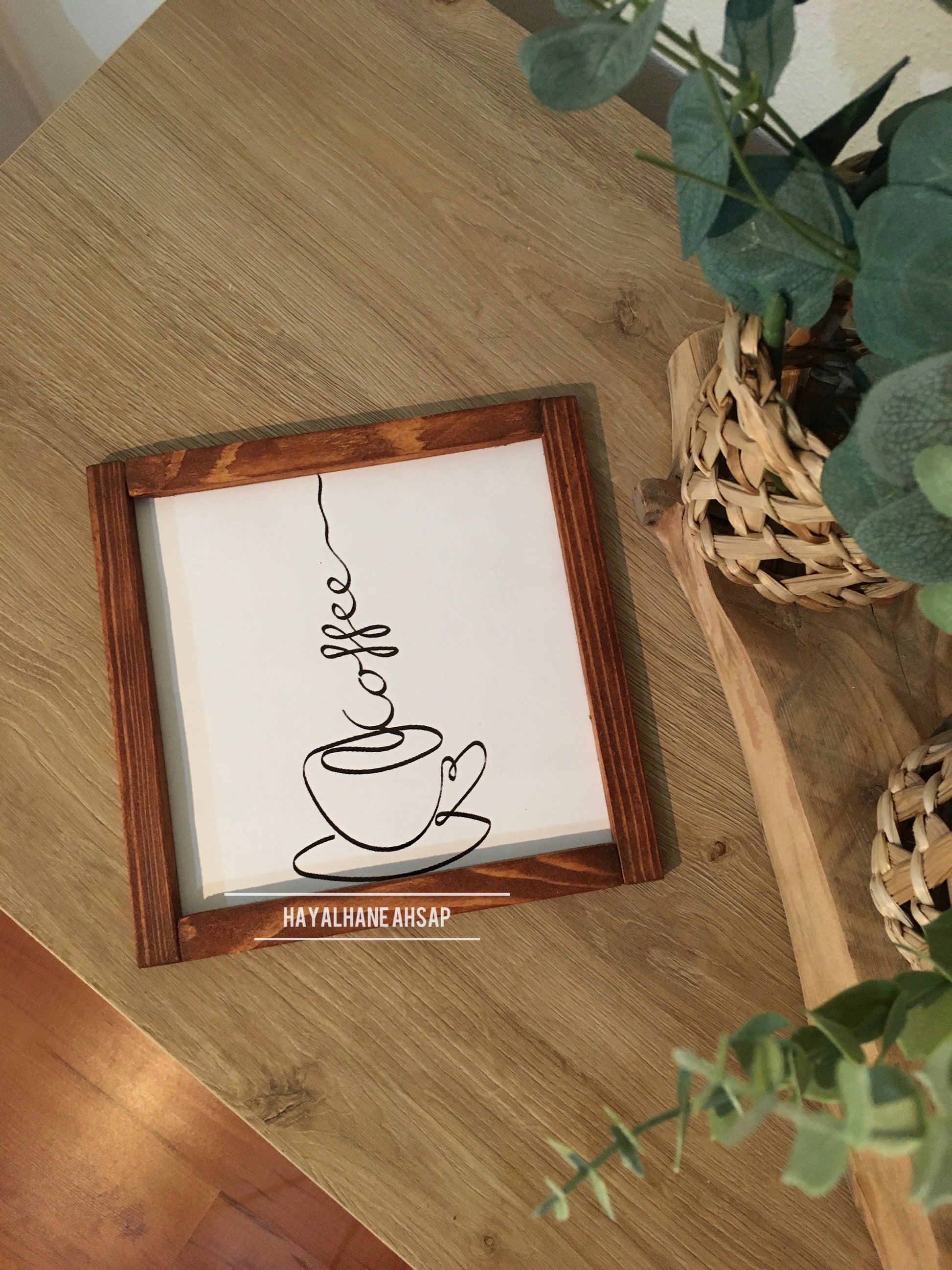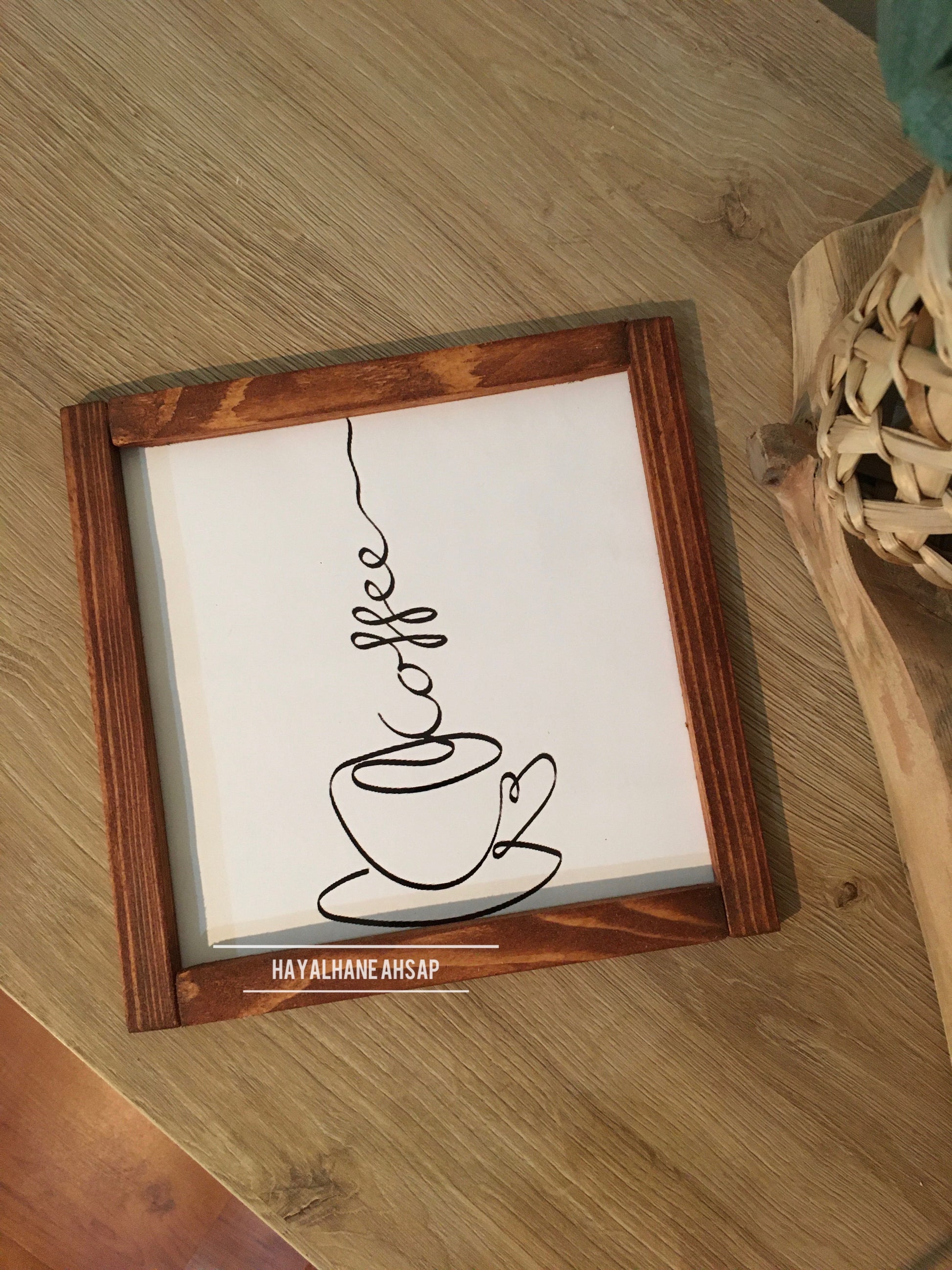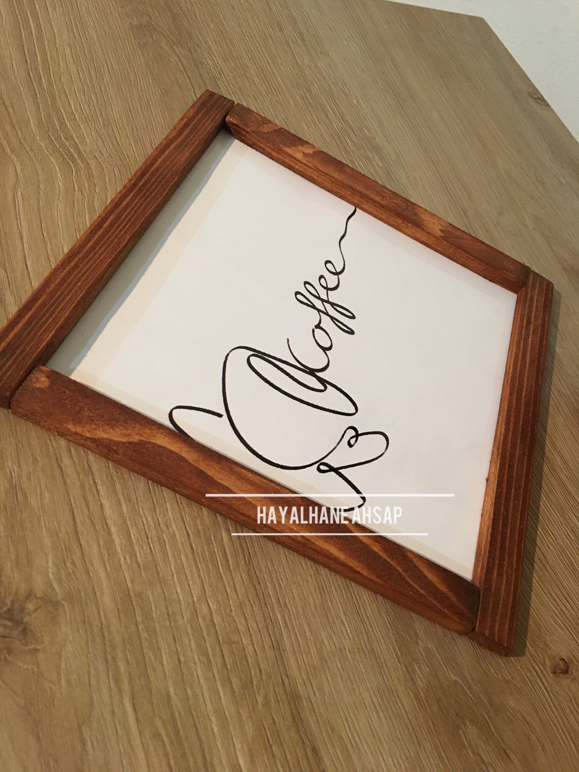 Ürün masif ağaç çerçevelidir. İç kısımları ahşap üzerine parlak baskılıdır. Ürün 20*20 cm ölçülerindedir. Arkasında askı aparatı mevcuttur. Bantlı kullanmak isterseniz bize iletebilirsiniz.
