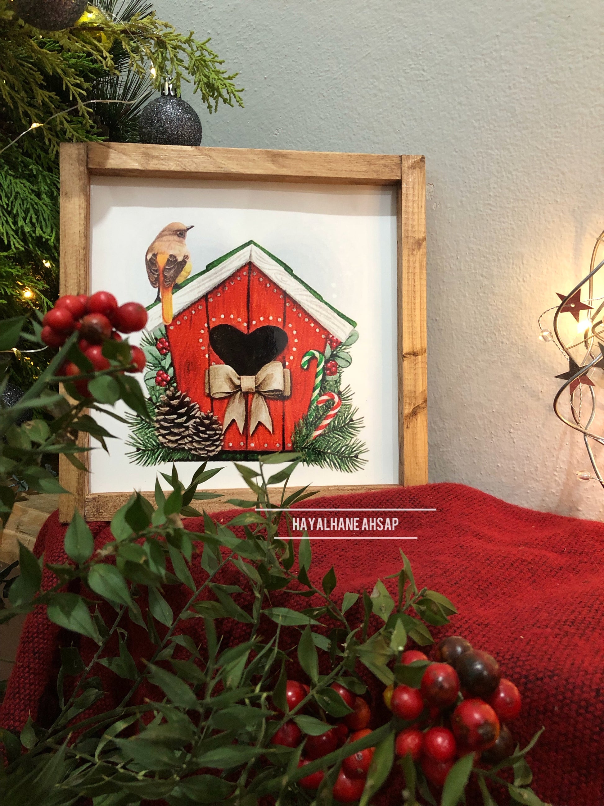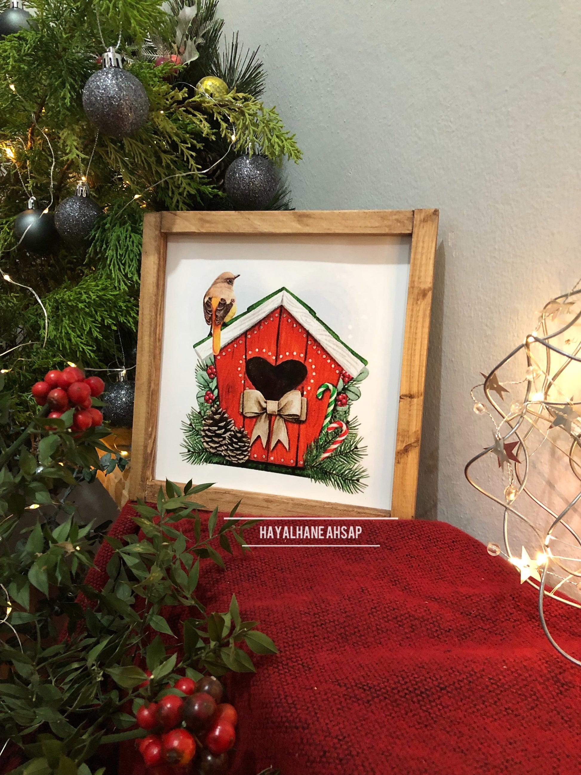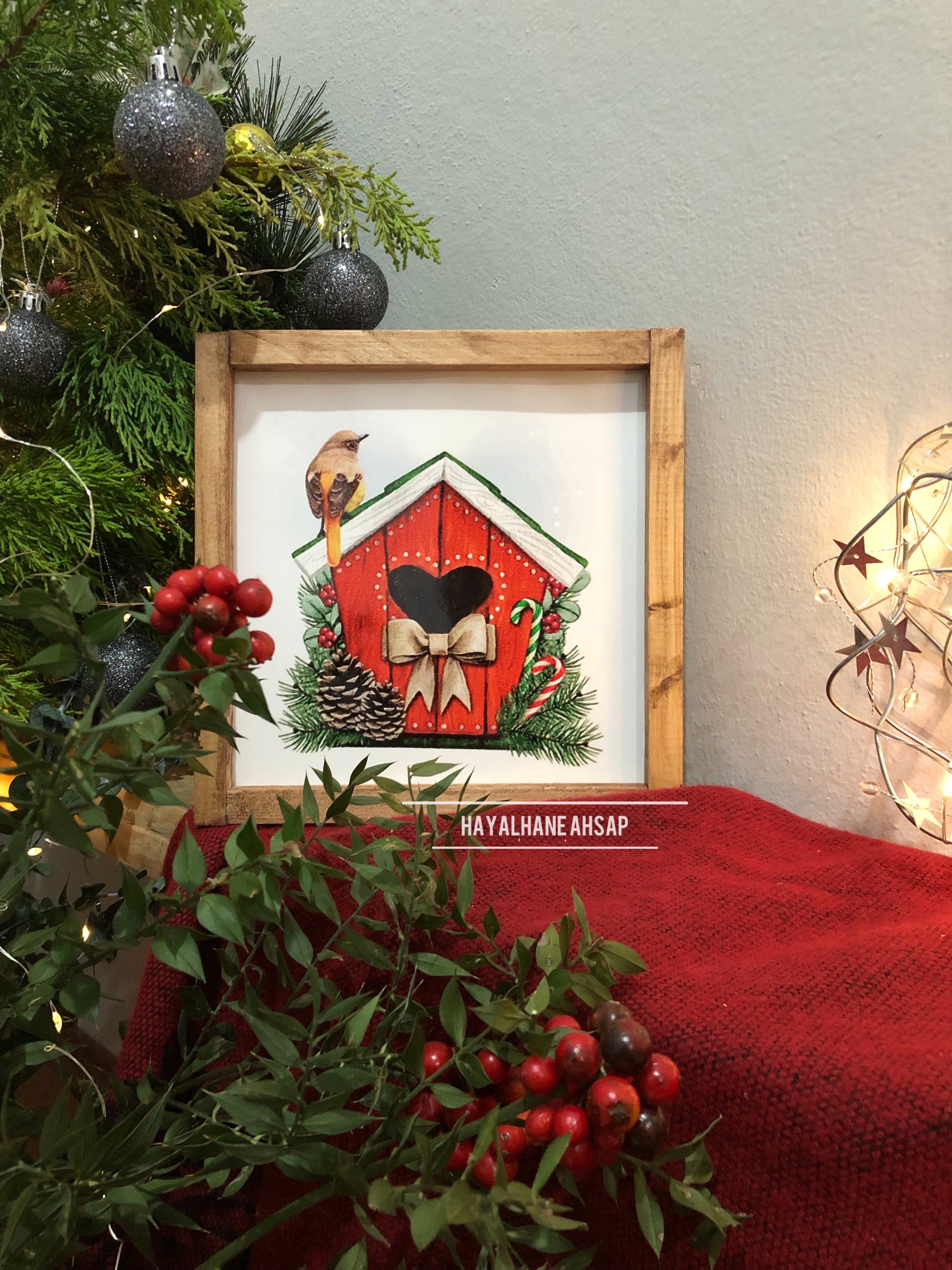20*20 cm ölçüsünde ahşap üzerine parlak folyo baskılıdır.