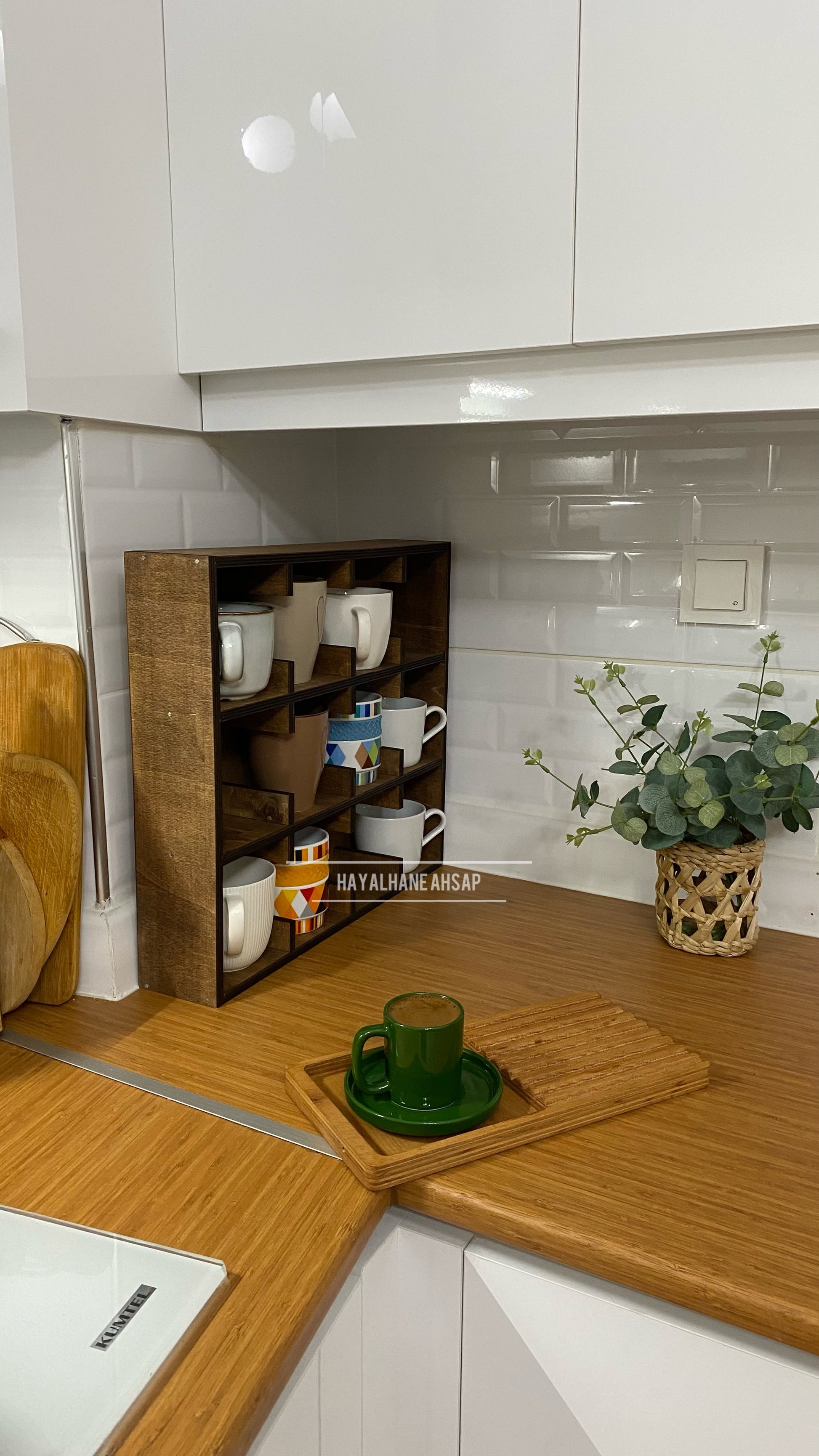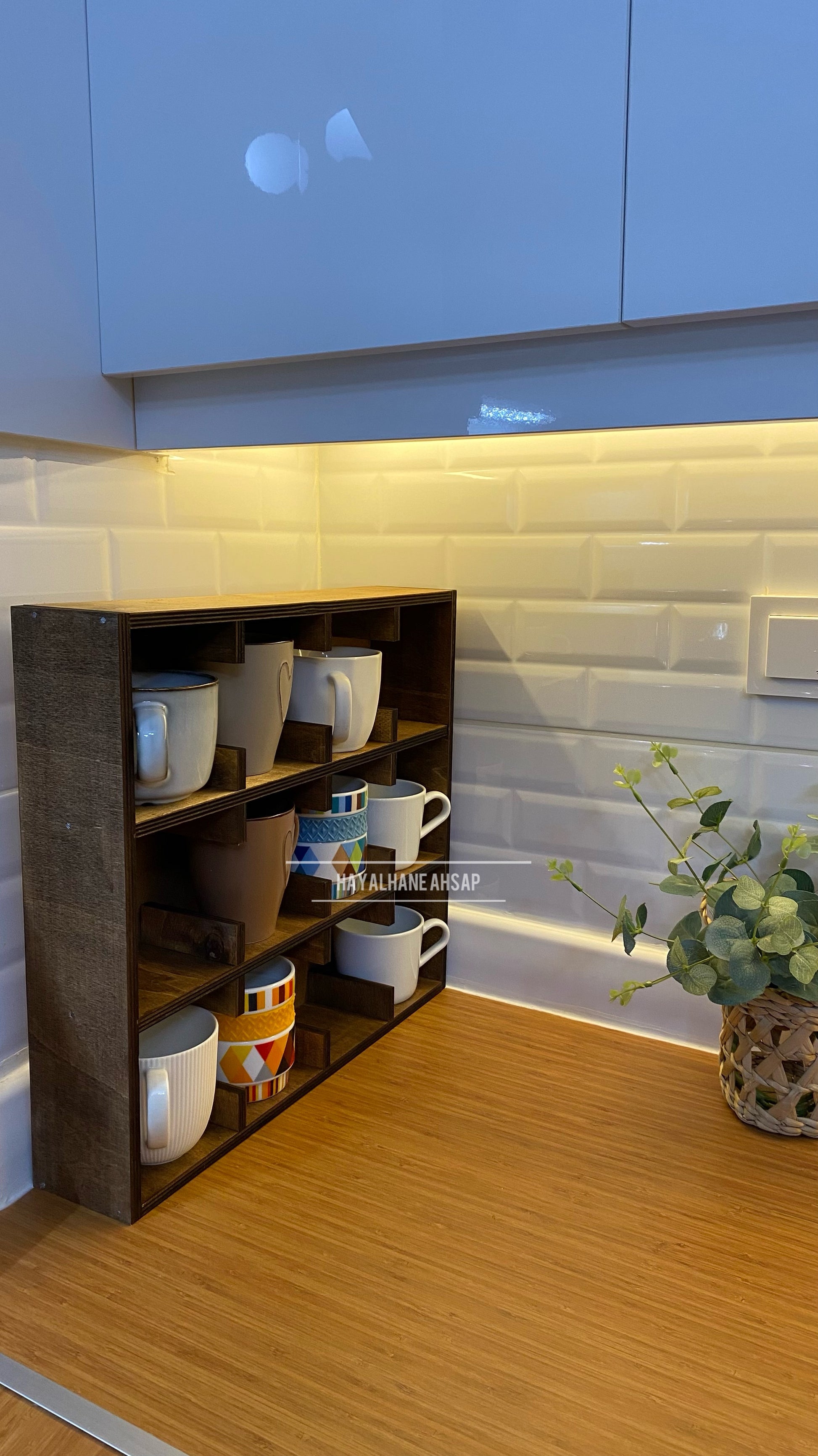 Ahşap Kupa Rafı/ Özgün tasarımlı bu raf ile en sevdiğiniz kupa, obje ve fincanlarınızı sergileyebilirsiniz. Dilediğiniz alanda kullanabileceğiniz ürünün ceviz renk tonu ürünlerimiz arasında bulunuyor.
