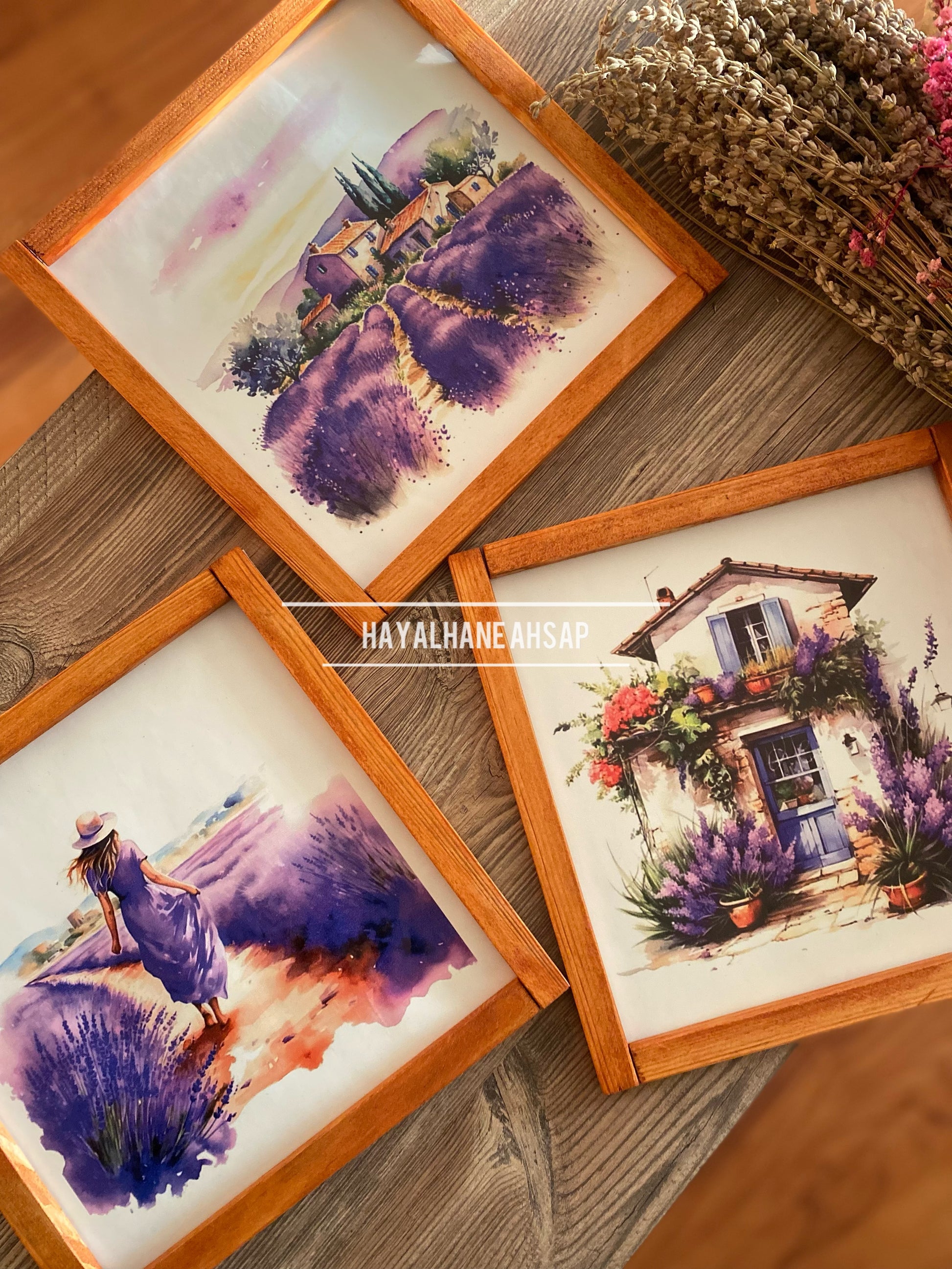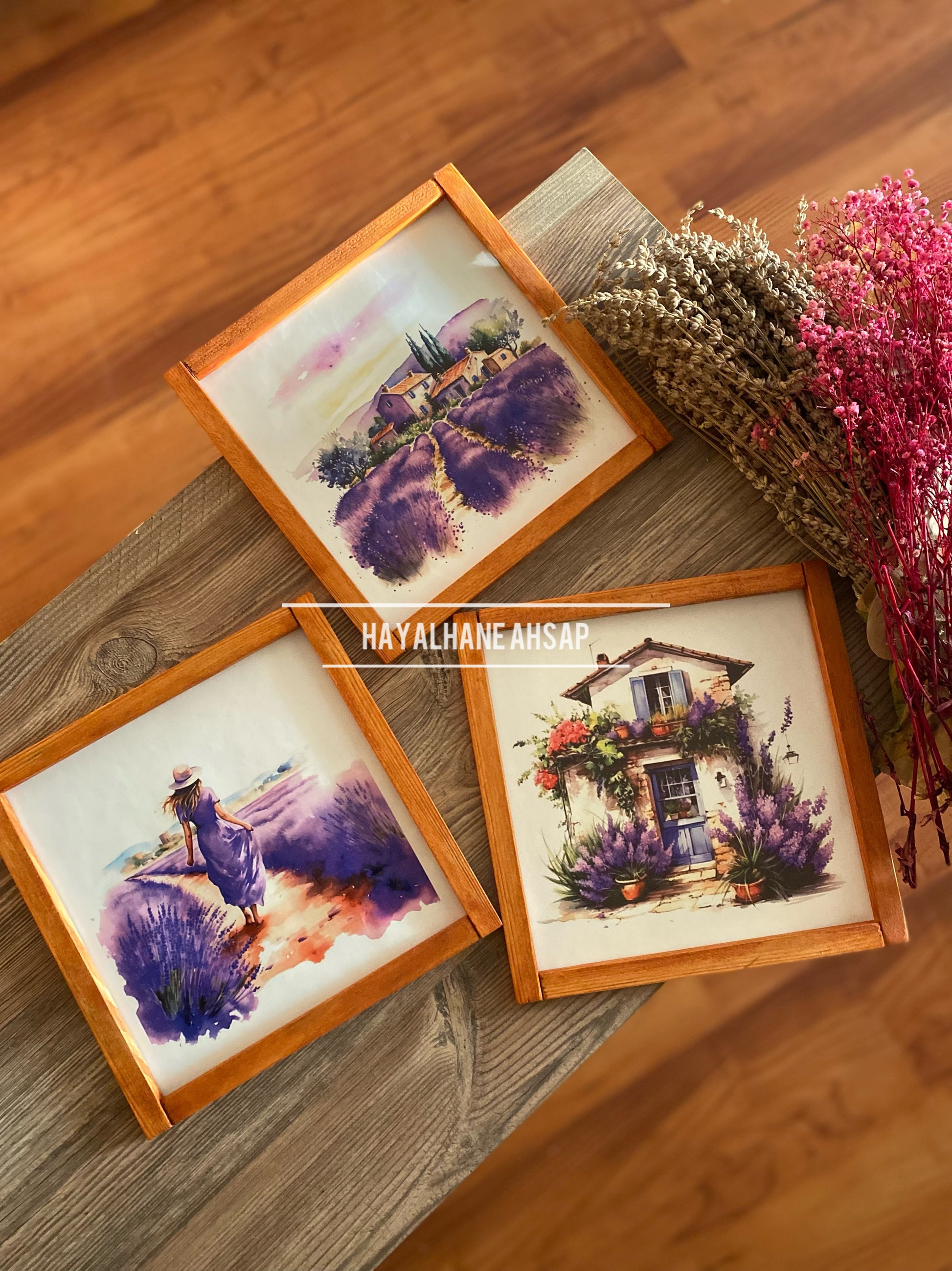 Lavanta Temalı Ahşap Tablo Seti