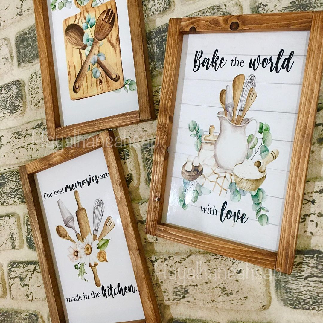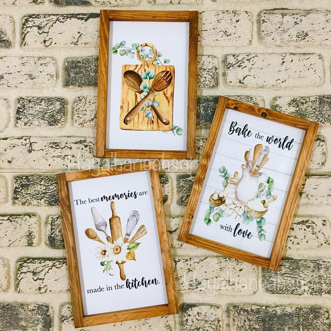 Изделия, которые вы можете использовать в декоре кухни, изготовлены вручную в рамах из массива дерева.