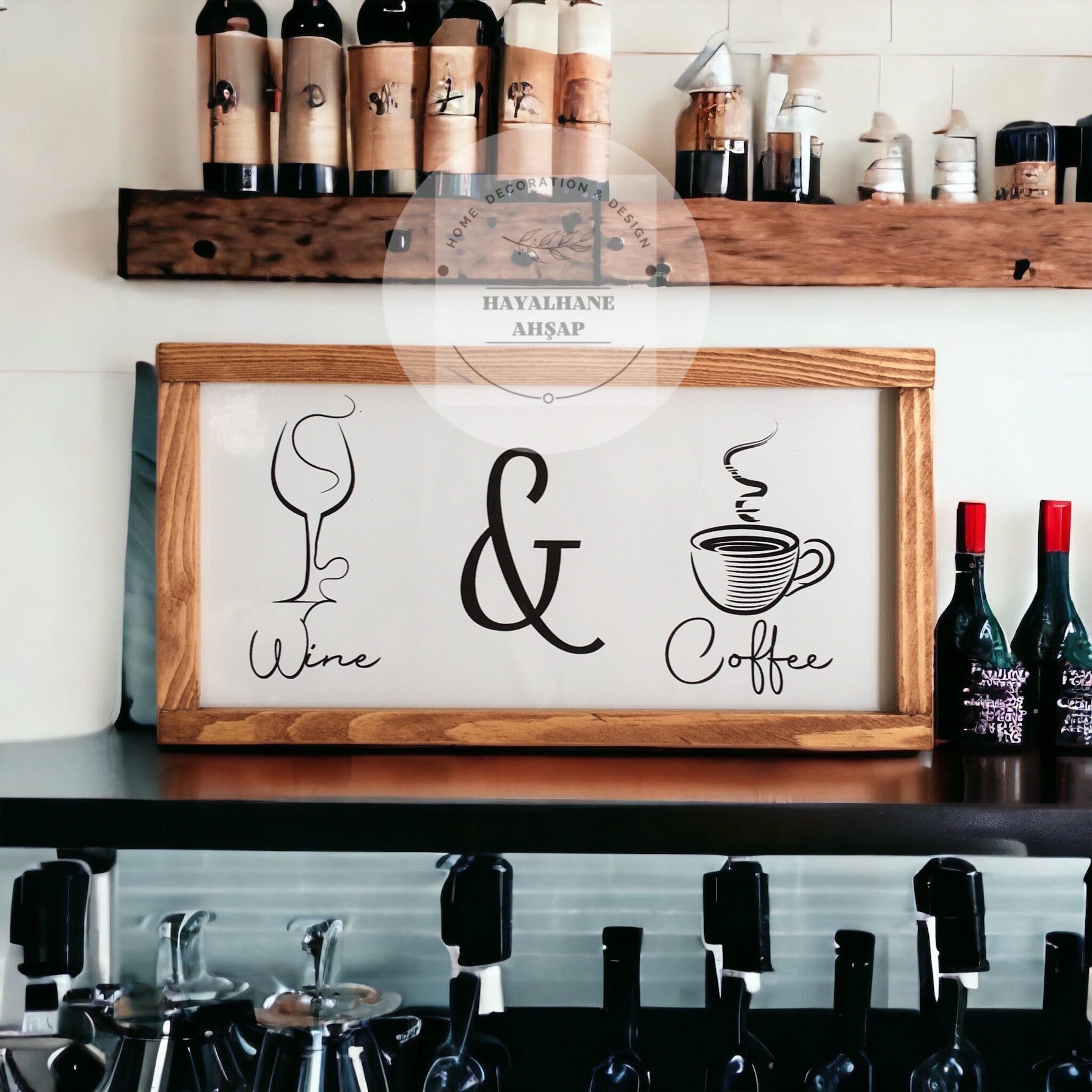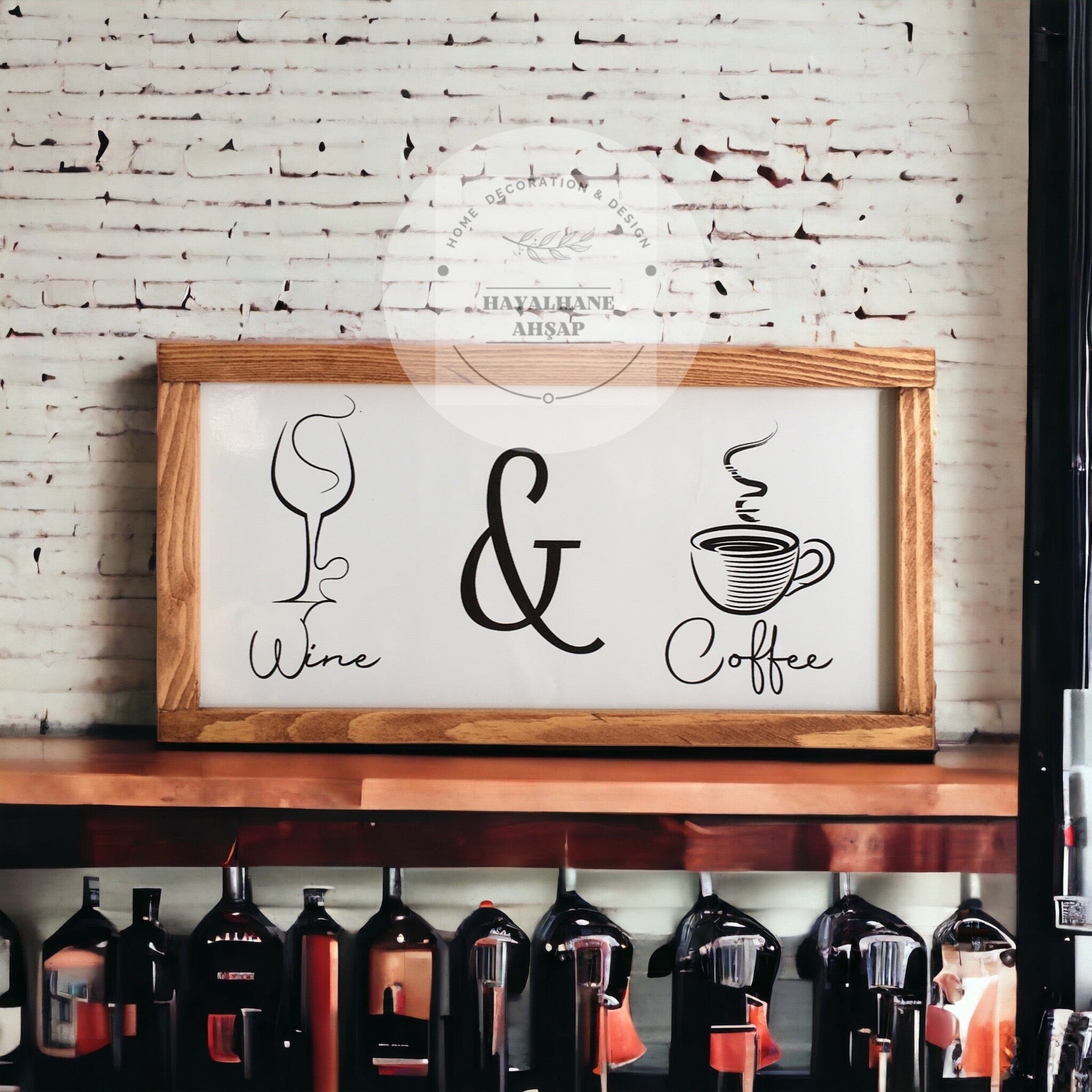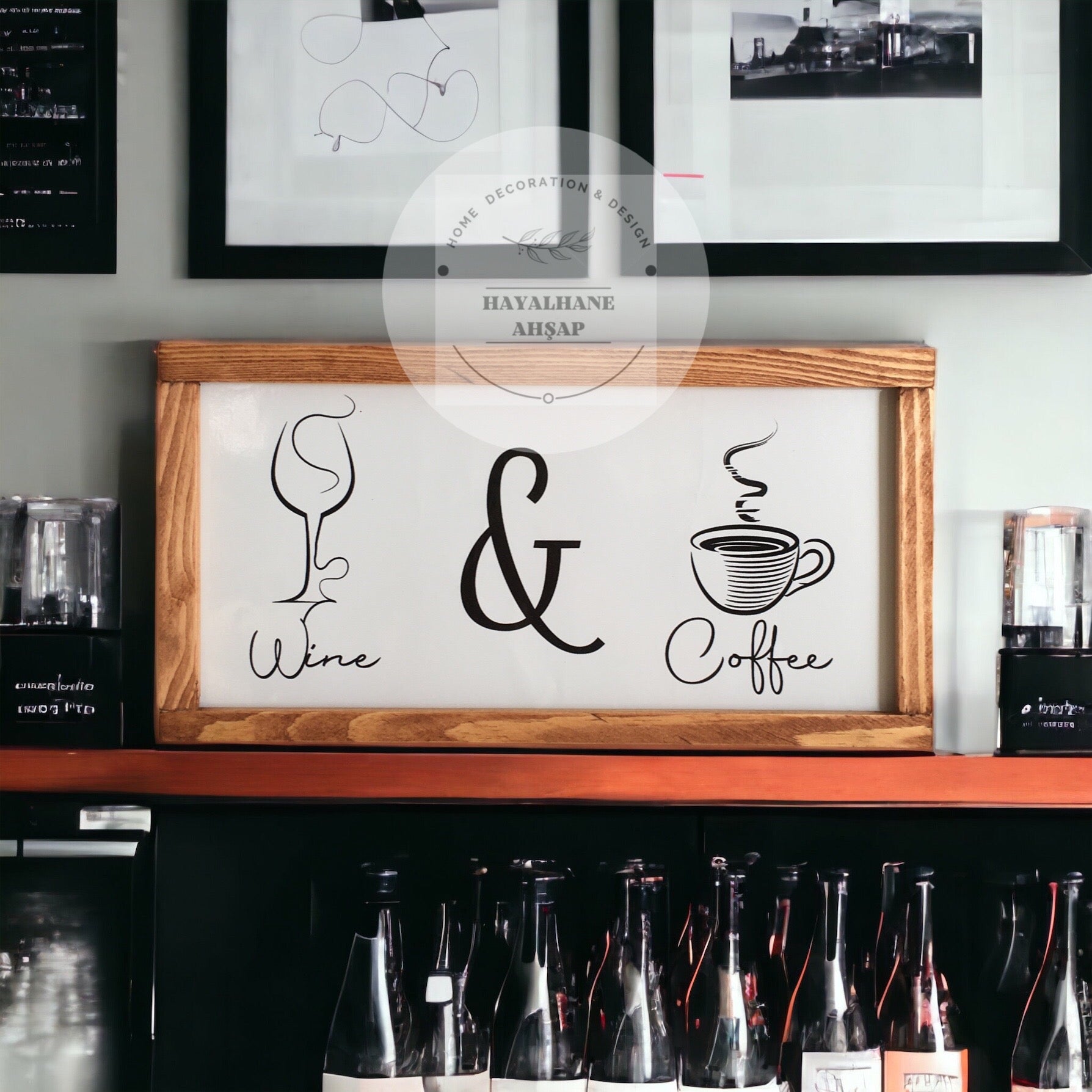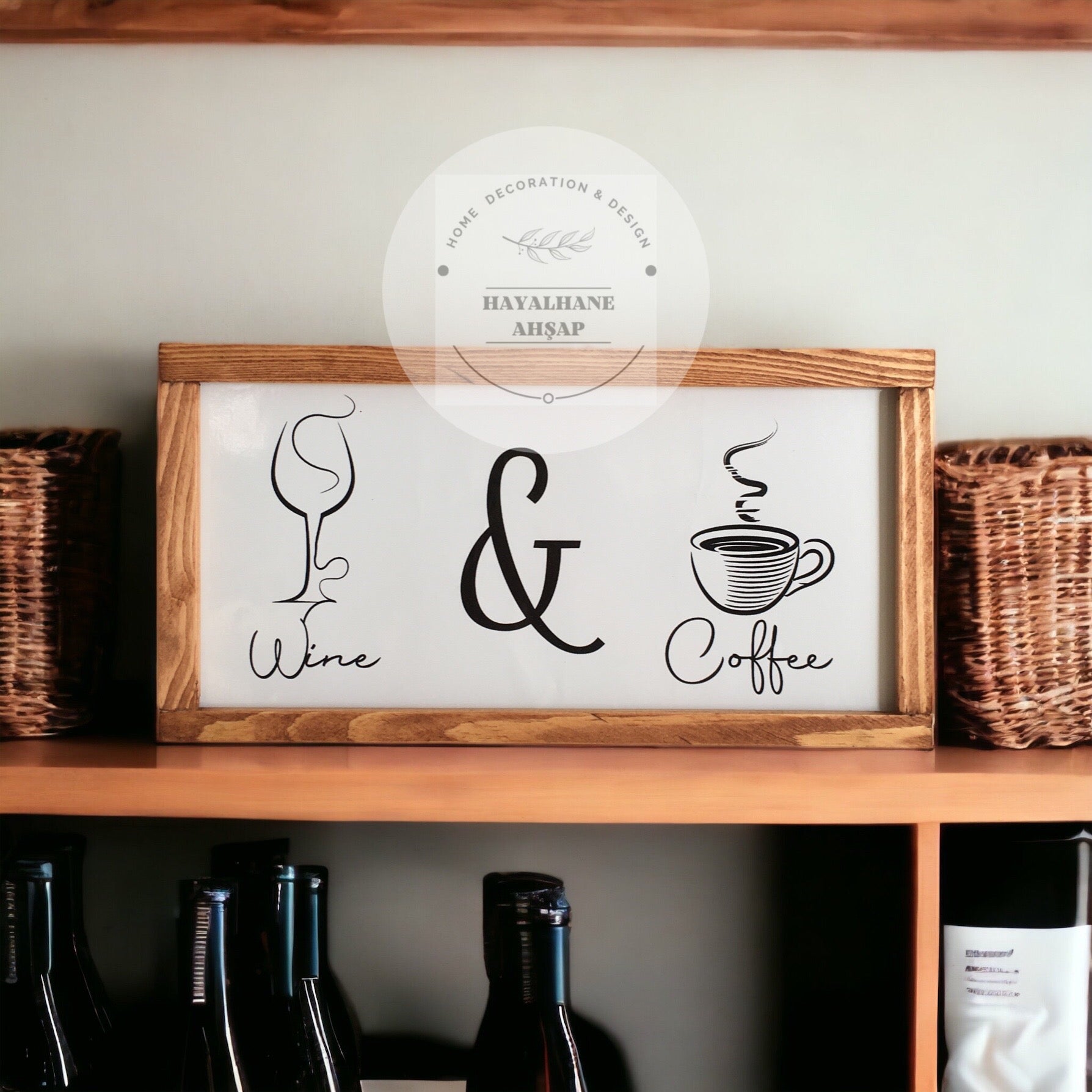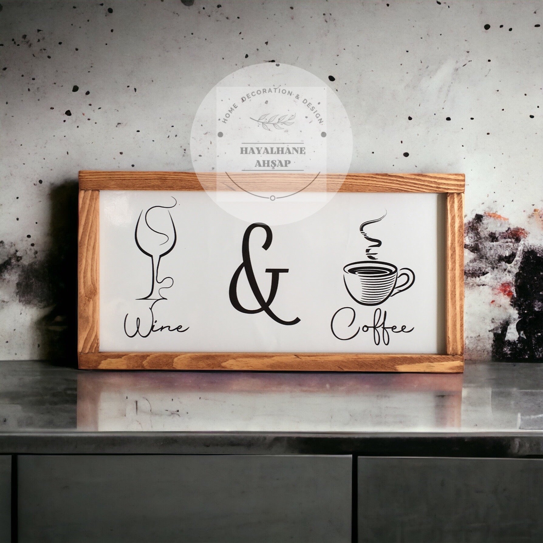 Это специально разработанное изделие, которое вы можете использовать в качестве декоративного элемента на кухне и в кофейном уголке, имеет размер 18*35 см и имеет каркас из массива ели ручной работы. Изделие полностью деревянное. Это глянцевая фольга, напечатанная на деревянном фоне. Вы можете легко очистить его влажной тканью, которая не выцветает. Стол отправляется с вешалкой, готовый к сборке. Вы можете использовать его с лентой, если хотите. Для этого достаточно отправить нам заявку на двусторонний скотч с номером заказа.